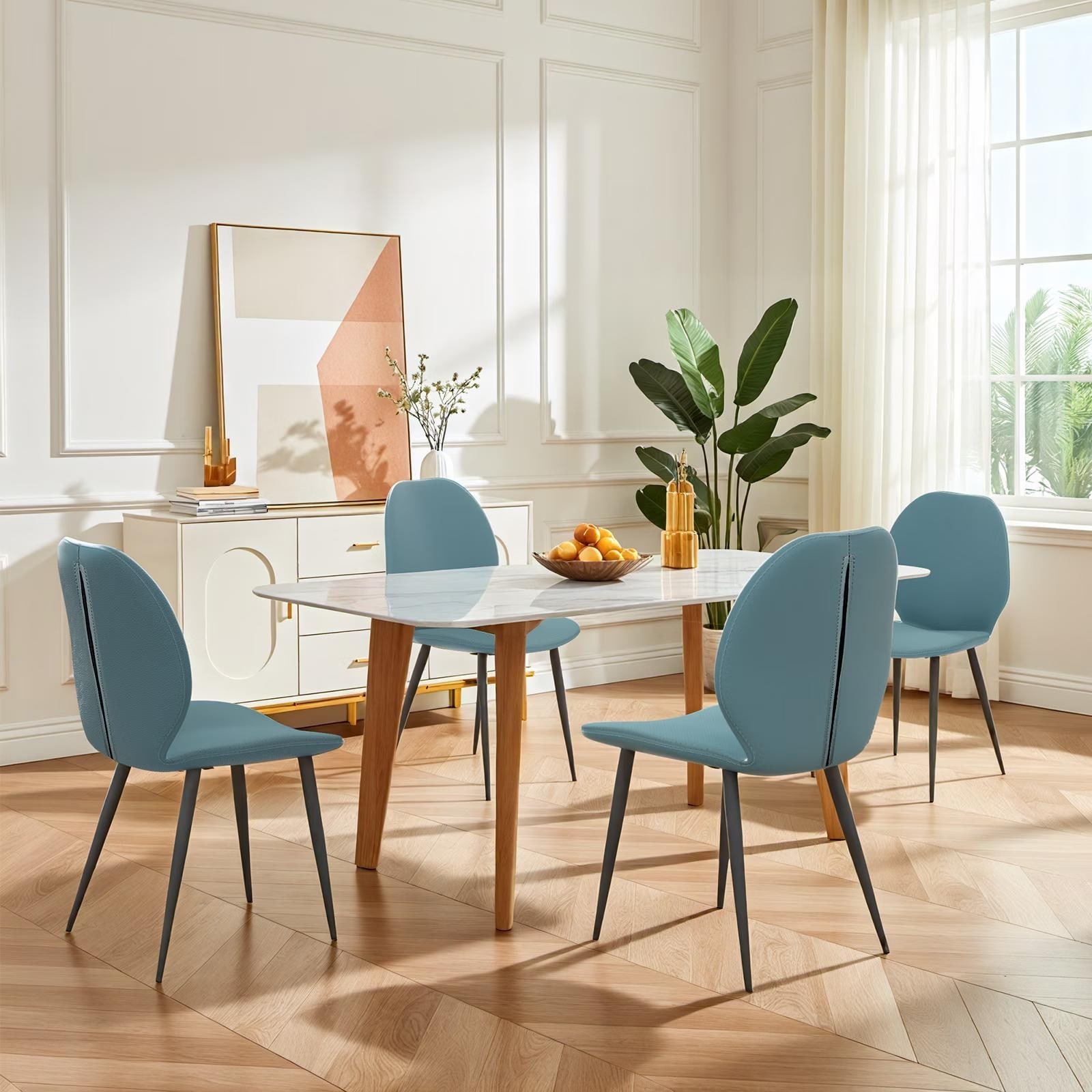 Leather Dining Chair Set of 6 Side Chair Green Vanity Chair Reception Chair Accent Chair with Metal Legs
