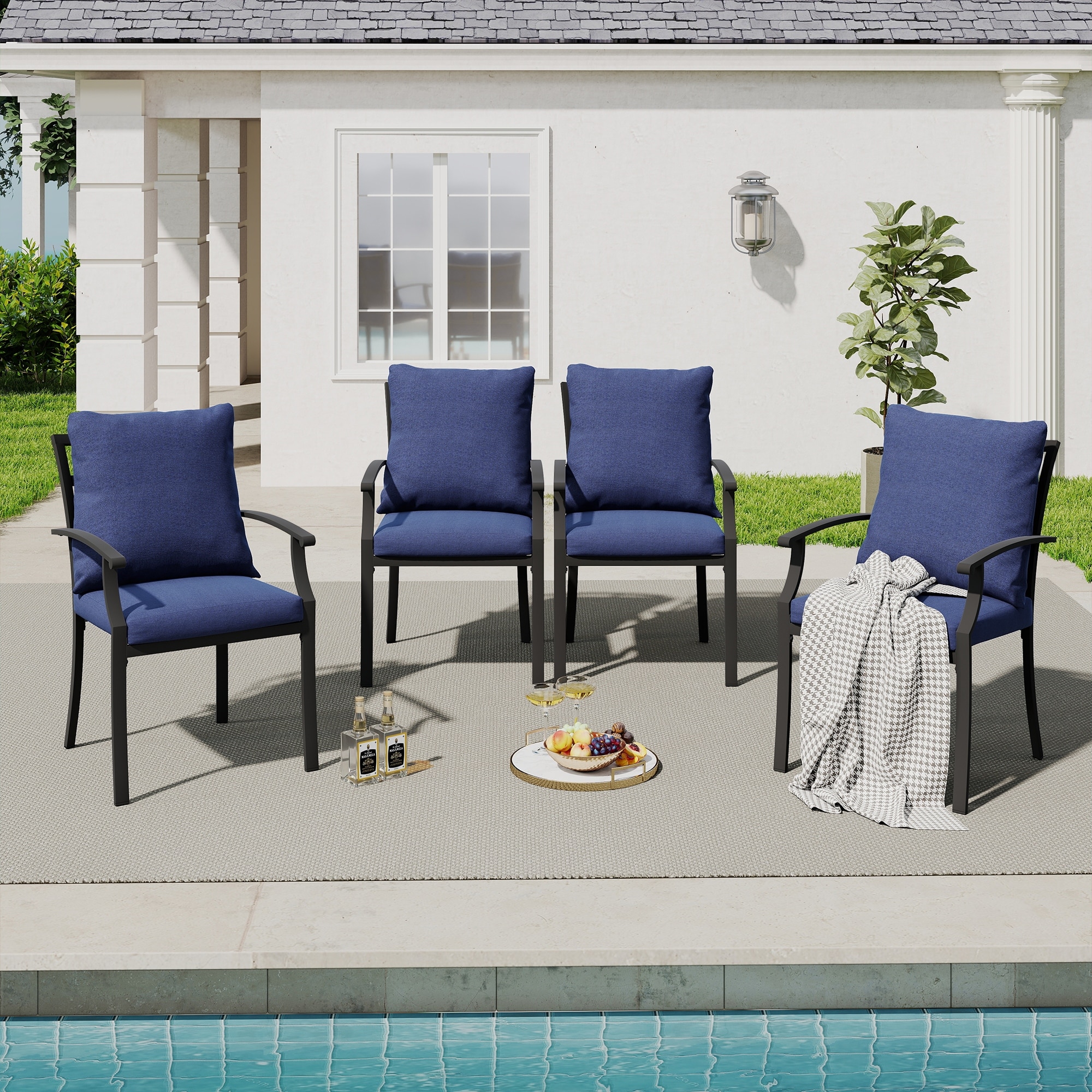 Patio Cast Aluminum Dining Chairs with Random Color Cushions, Set of 4