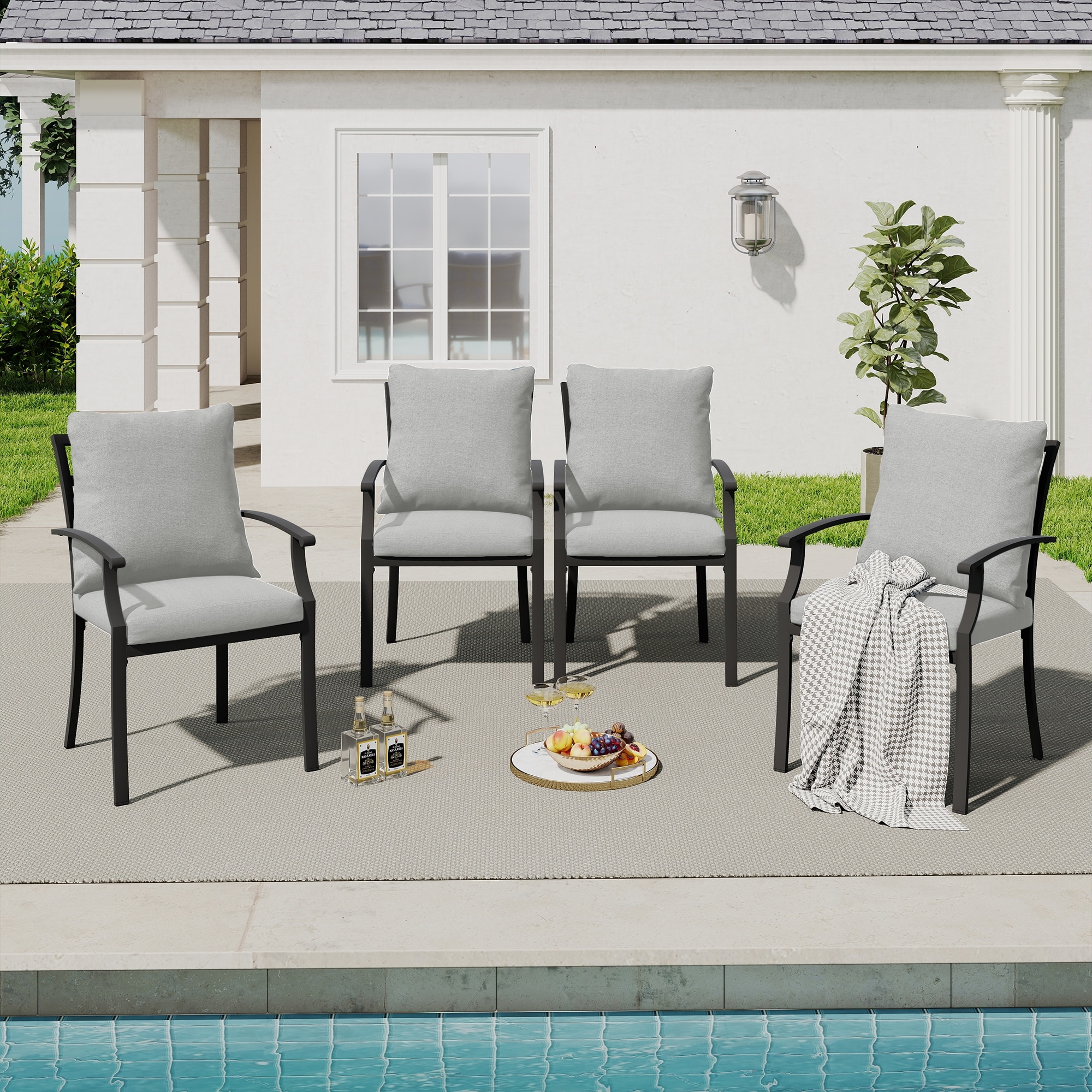 IvyGlow 4-Piece Metal Patio Dining Chairs with Gray Cushions