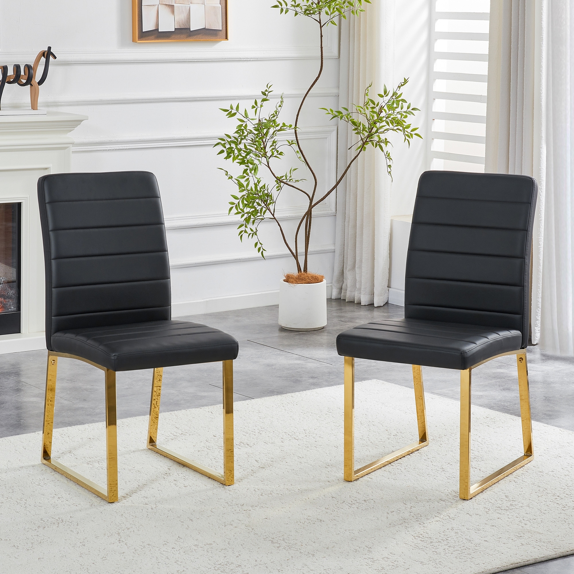 Dining Chair Kitchen Chair Side Chair Set of 2 Leather Chair Black Gold Office Chair Coffee Chair with Metal Legs