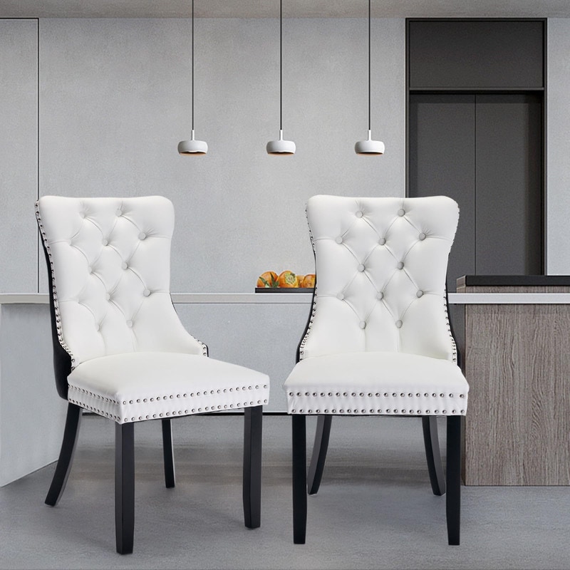 Set of 2 Cream White Dining Chairs: Faux Leather Mid-Century Modern Accent Chairs