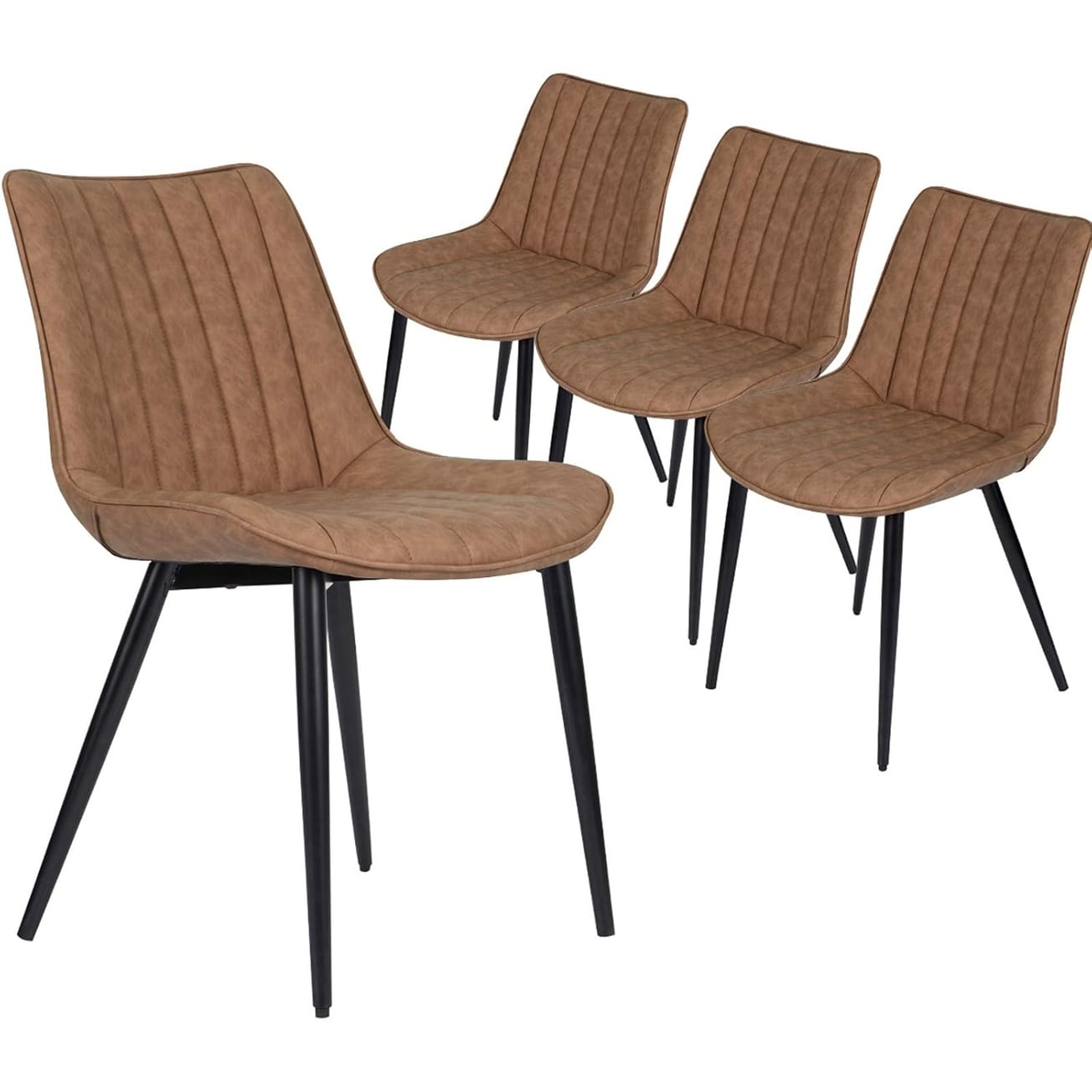 Modern Faux Leather Dining Chairs Set of 4 with Metal Legs for Kitchen, Living Room - Brown