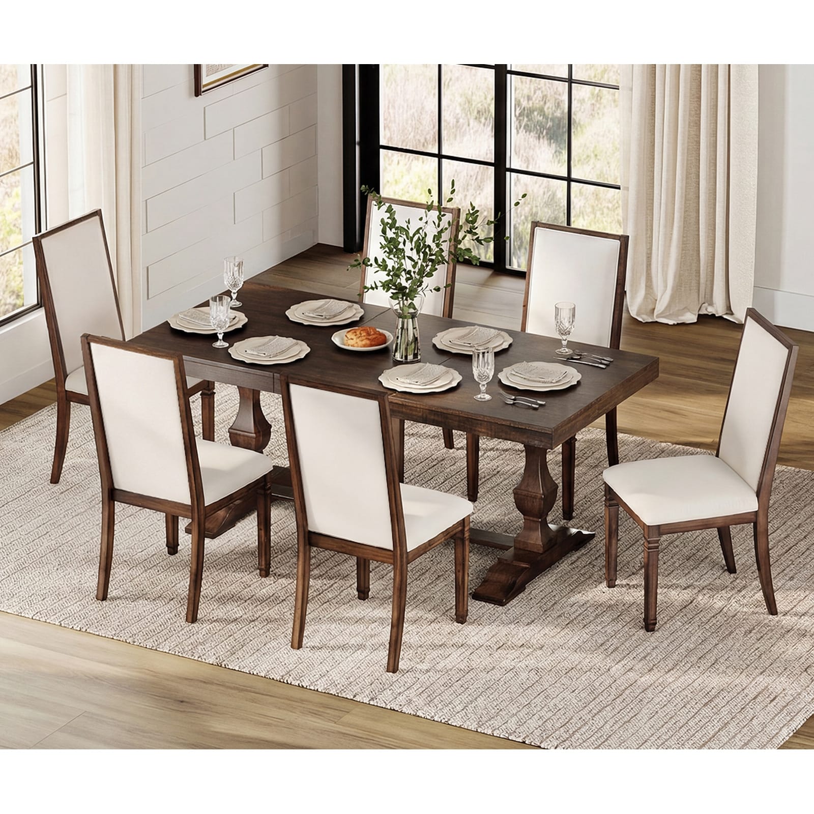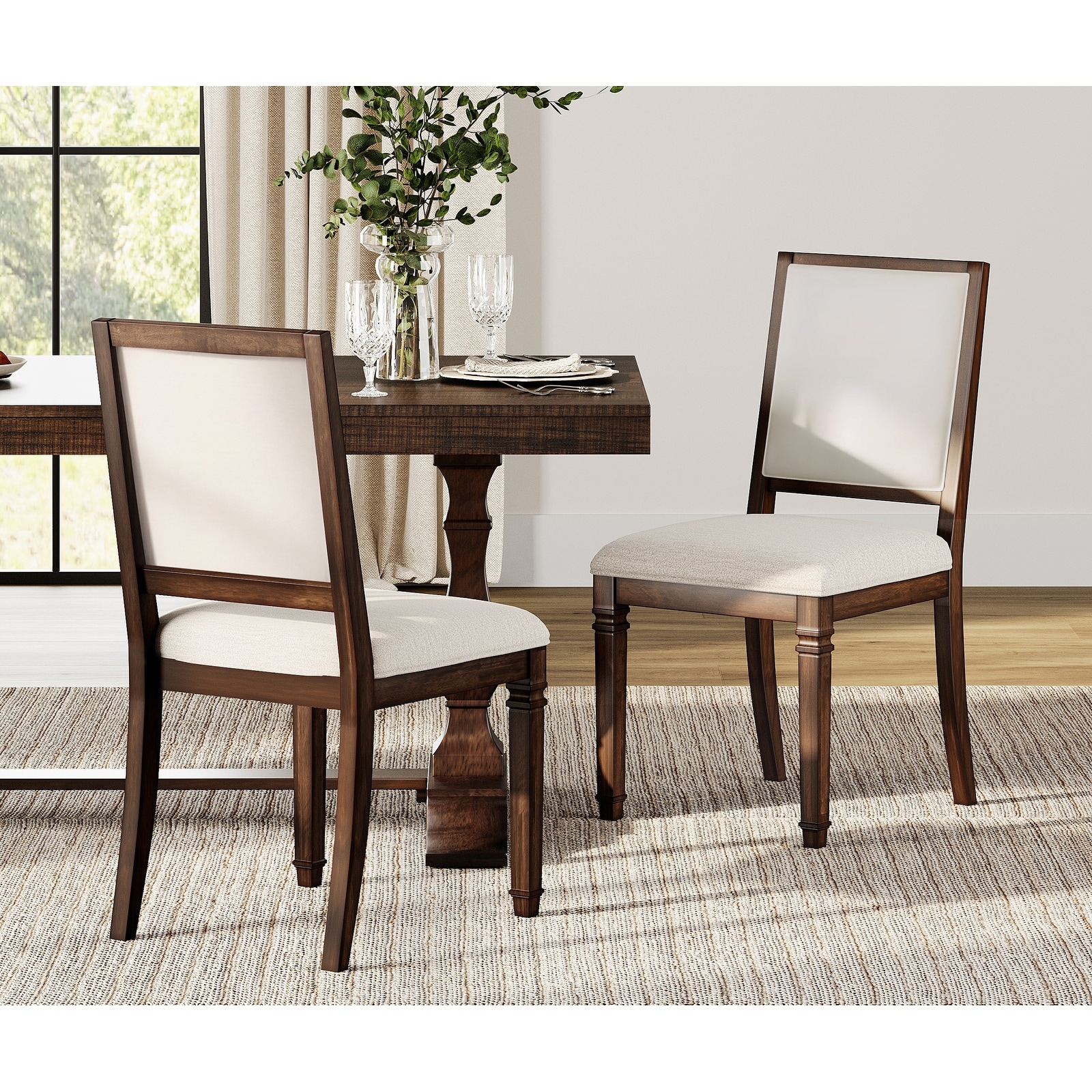 Solid Wood Dining Set of 2, Rustic Farmhouse Kitchen & Dining Room Chairs, Mid Century Table Chairs, Fully Assembled