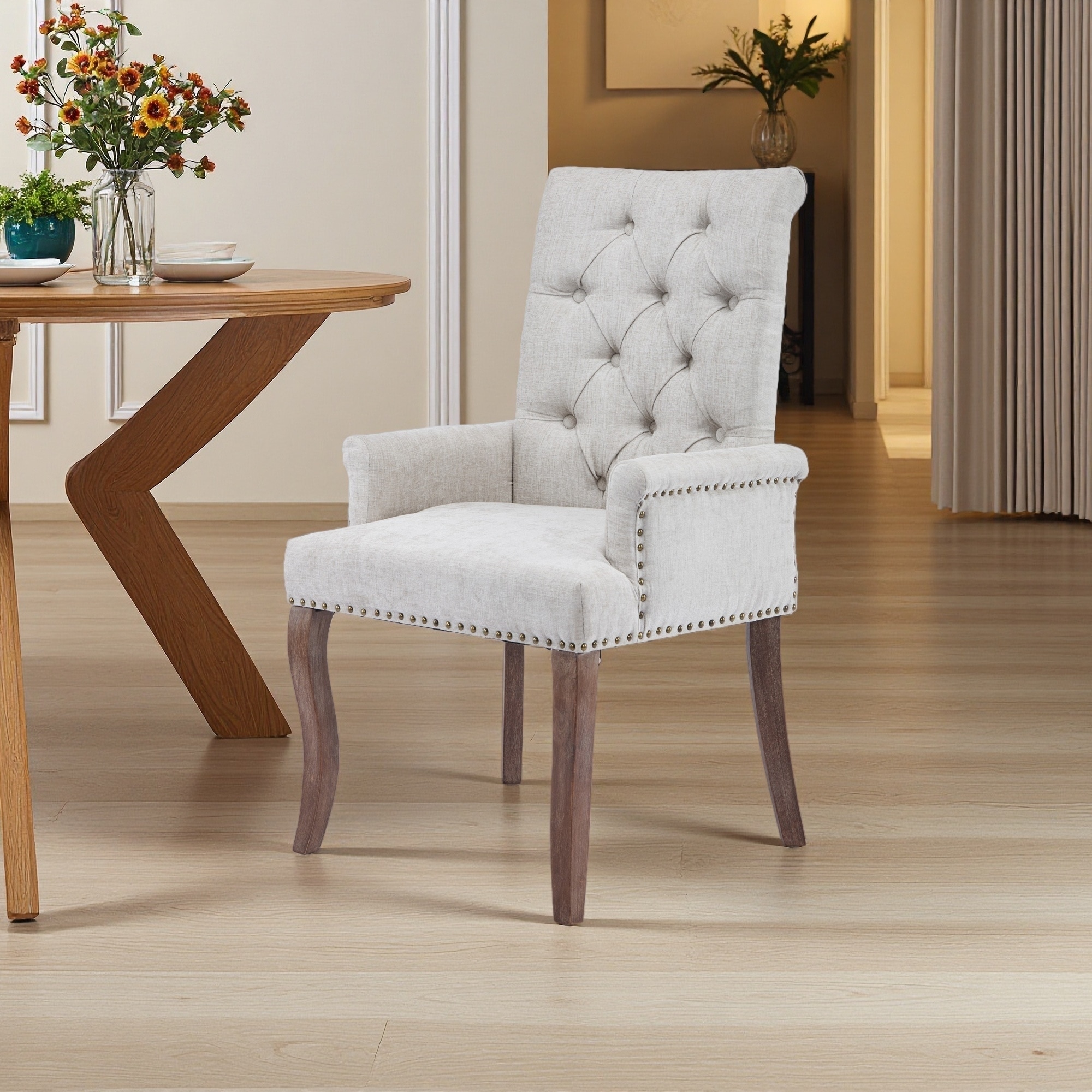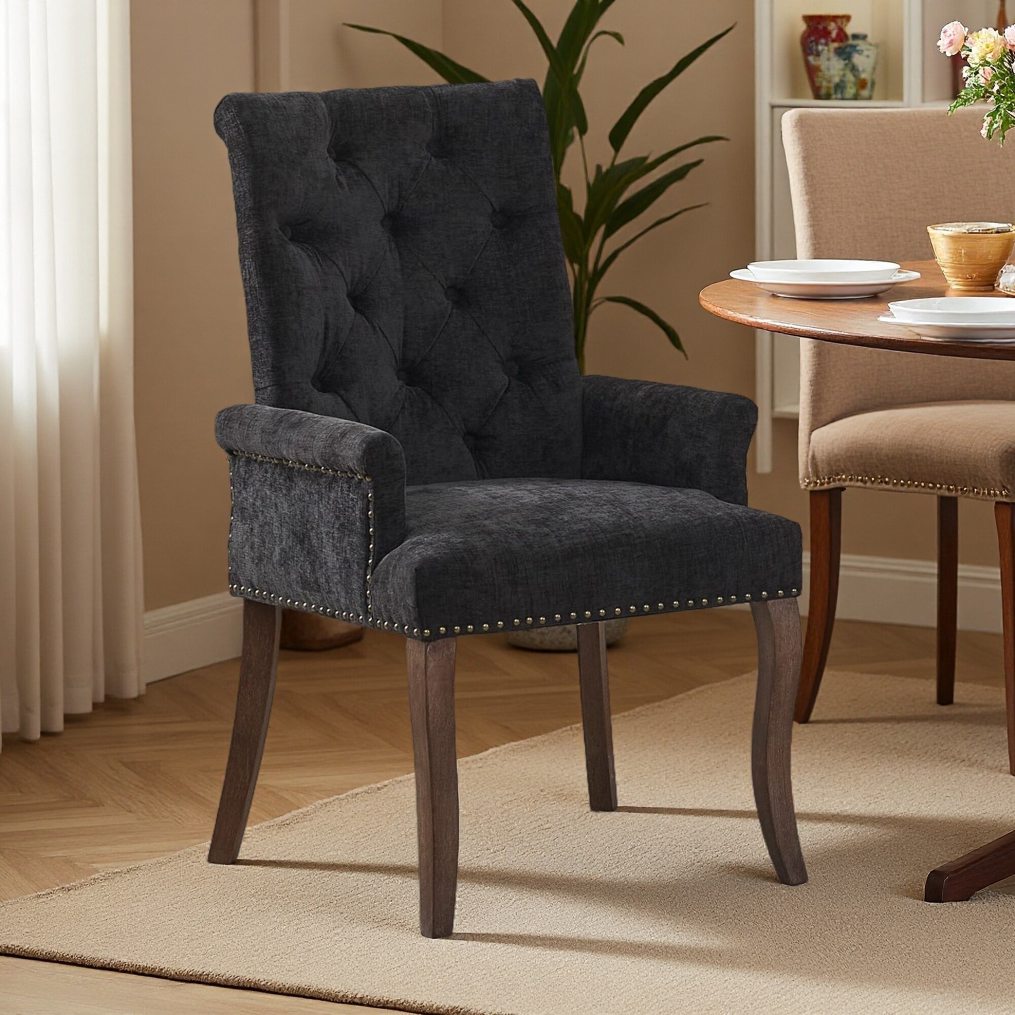 39.6"H Tufted Chenille Dining Chair with Solid Wood Legs & Armrests