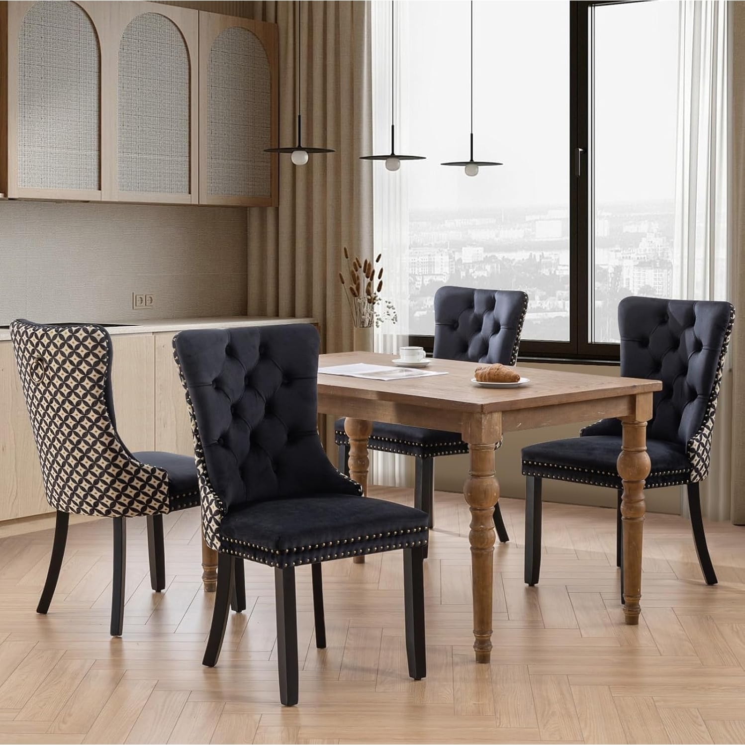 Modern Velvet Upholstered Dining Chair Set of 4 with Solid Wood Legs and Button Tufted Back