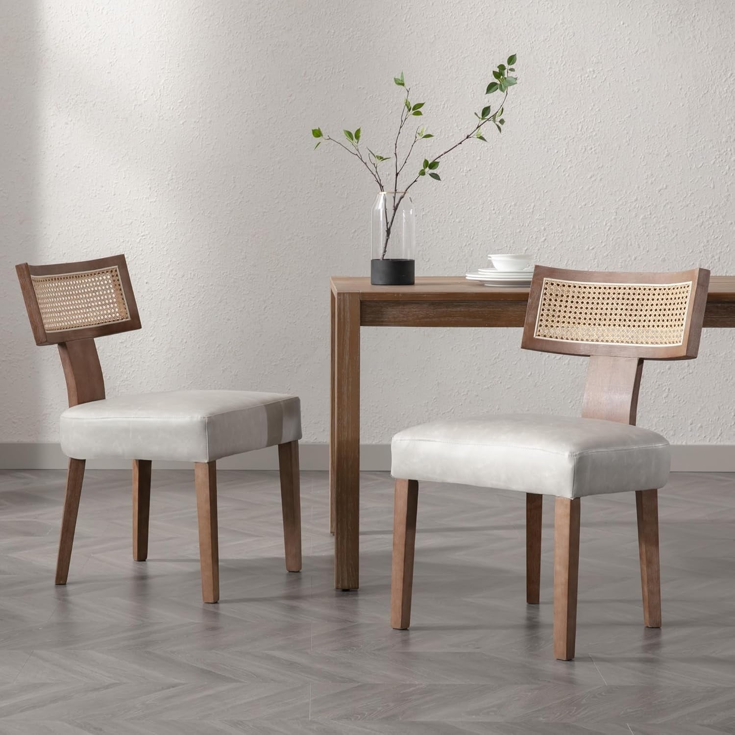 Set of 2 Modern Rattan Dining Chairs with PU Leather Upholstery and Wooden Frame