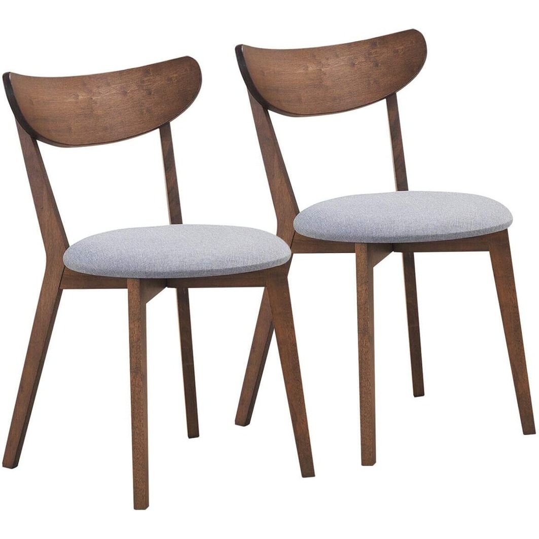 Mid-Century Modern Dining Chairs Set of 2, Curved Back Kitchen Chairs with Cushioned Seat, Walnut Wood Living Room Side Chairs