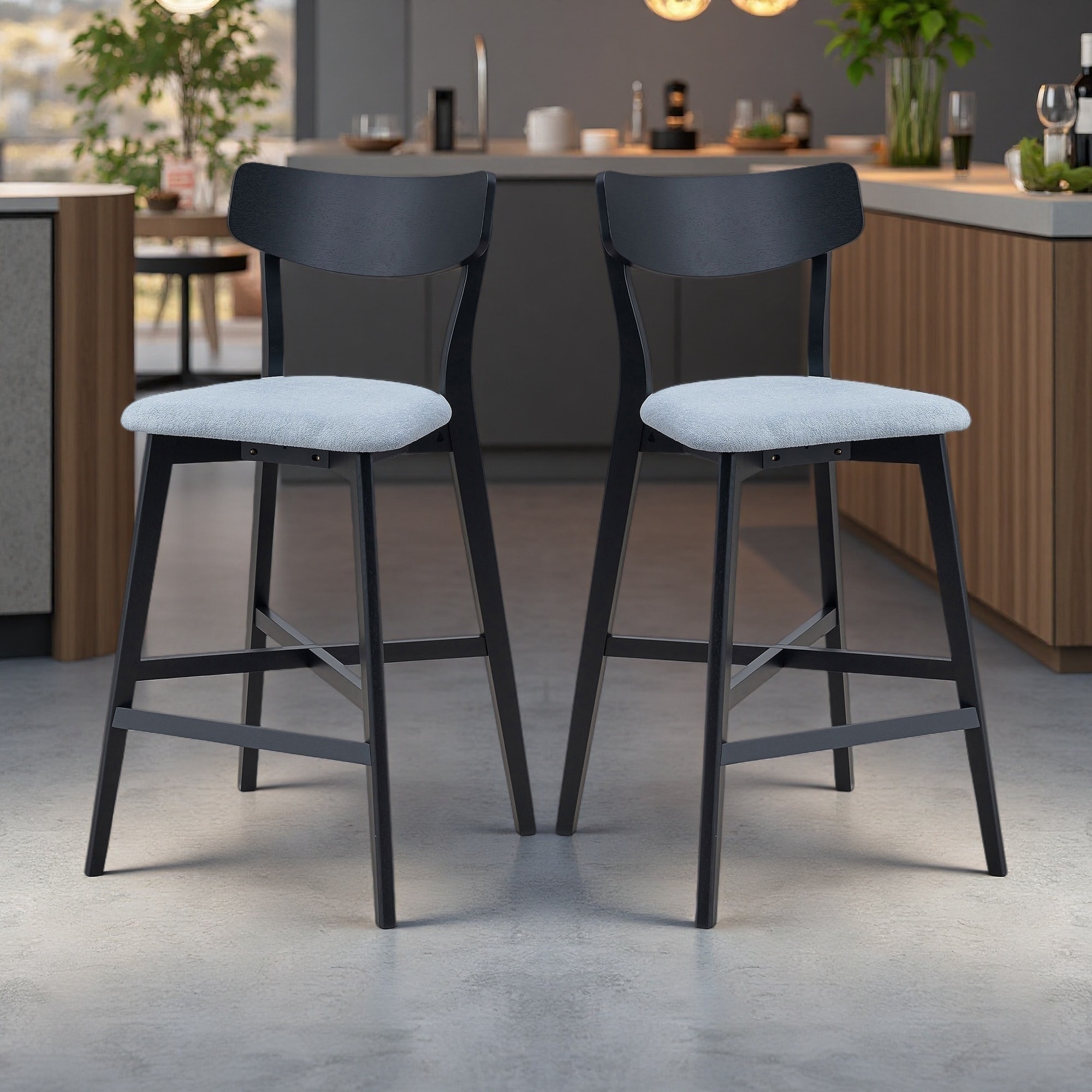 Counter Height Rubber Wood Bar Chairs Set of 2 with Upholstered Seats