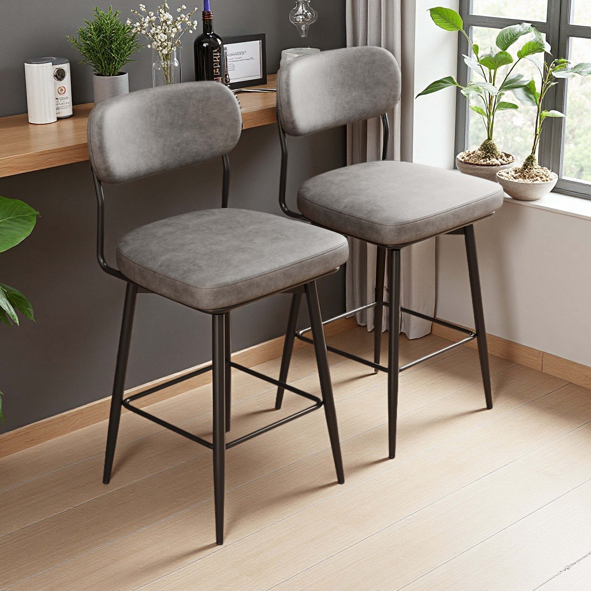 Swivel Bar Stools Set of 2 with Leather Cushions and Iron Base