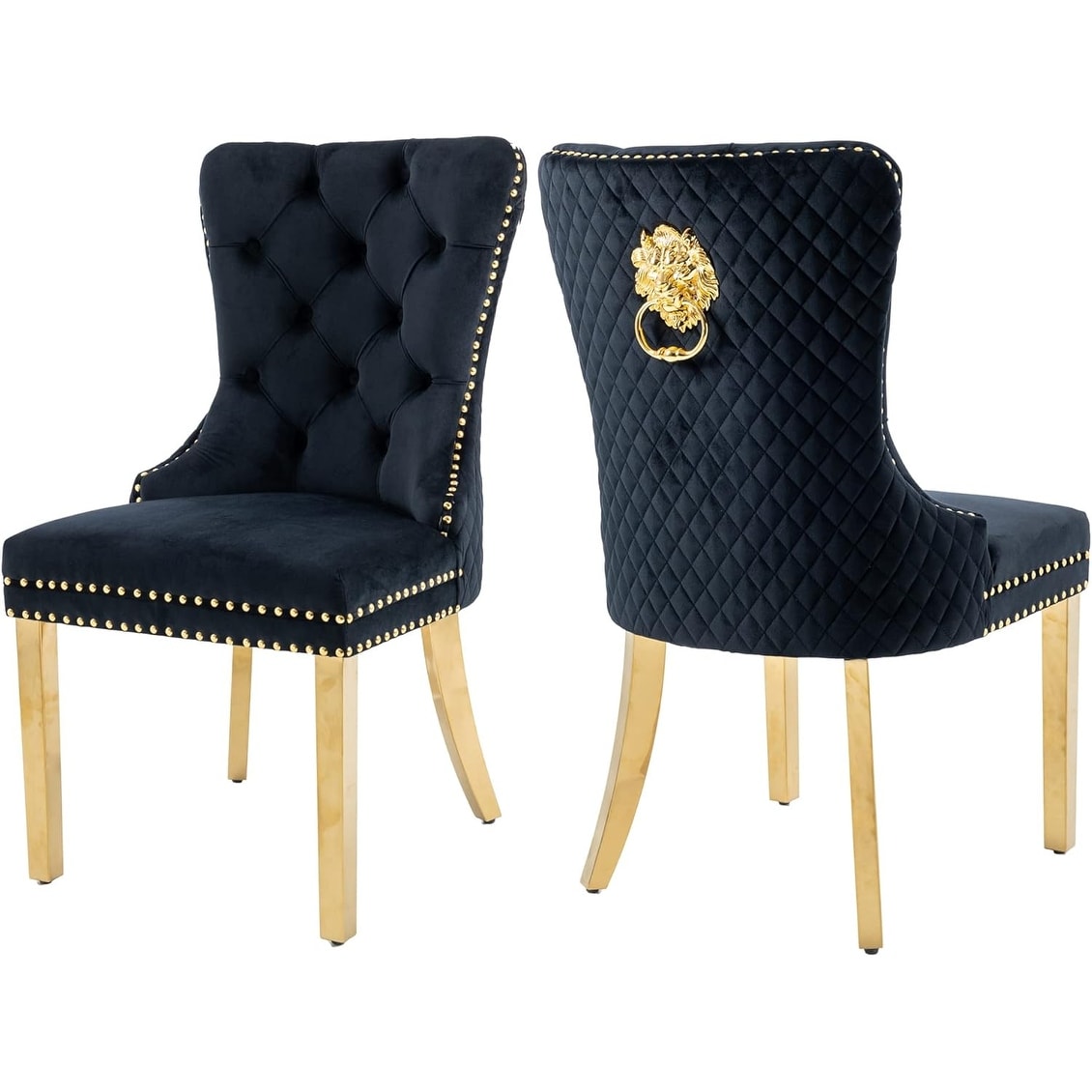 Modern Velvet Upholstered Dining Chairs Set of 2 with Lion Head Design and Stainless Steel Legs