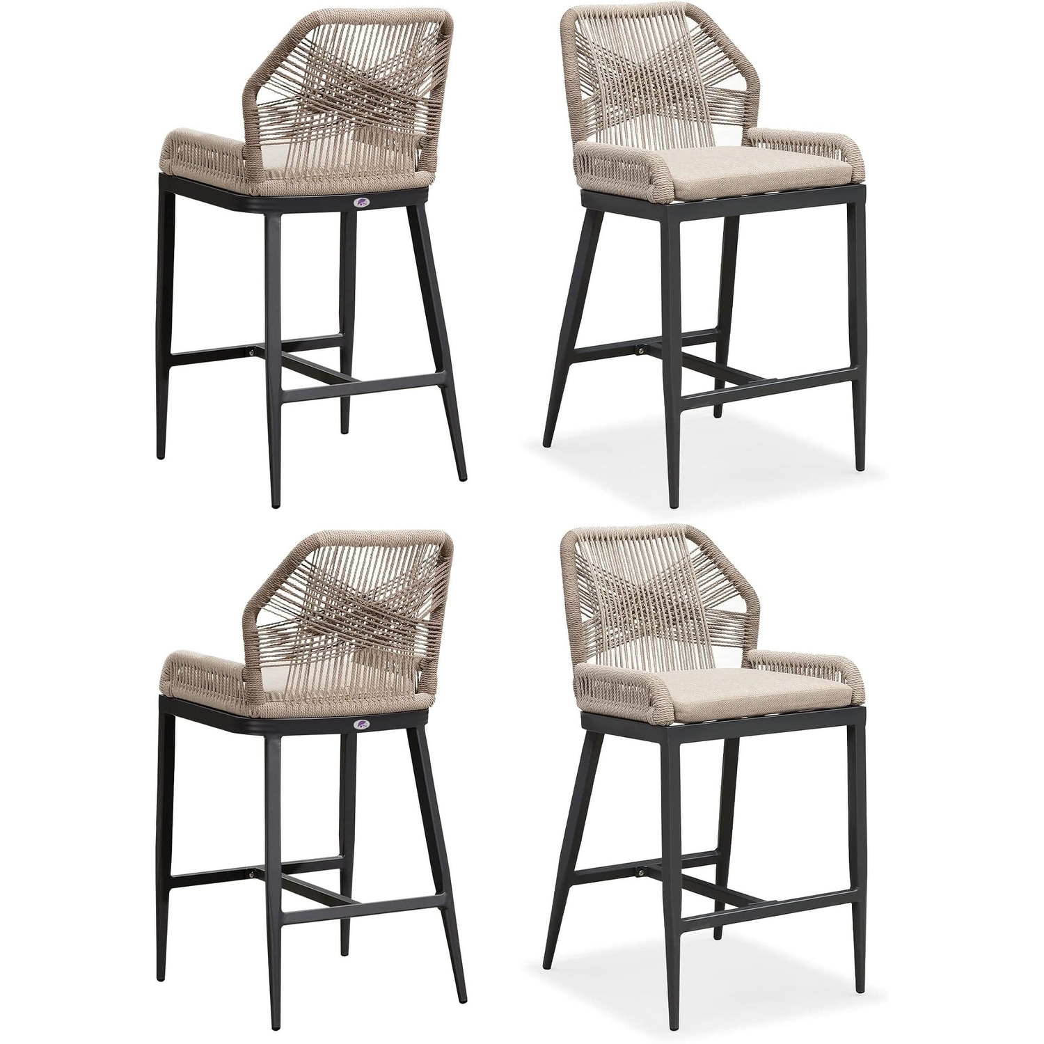 PURPLE LEAF Bar Stools Set of 4 Outdoor Bar Height Metal Stools Modern Wicker Rattan Barstools with Back Aluminum