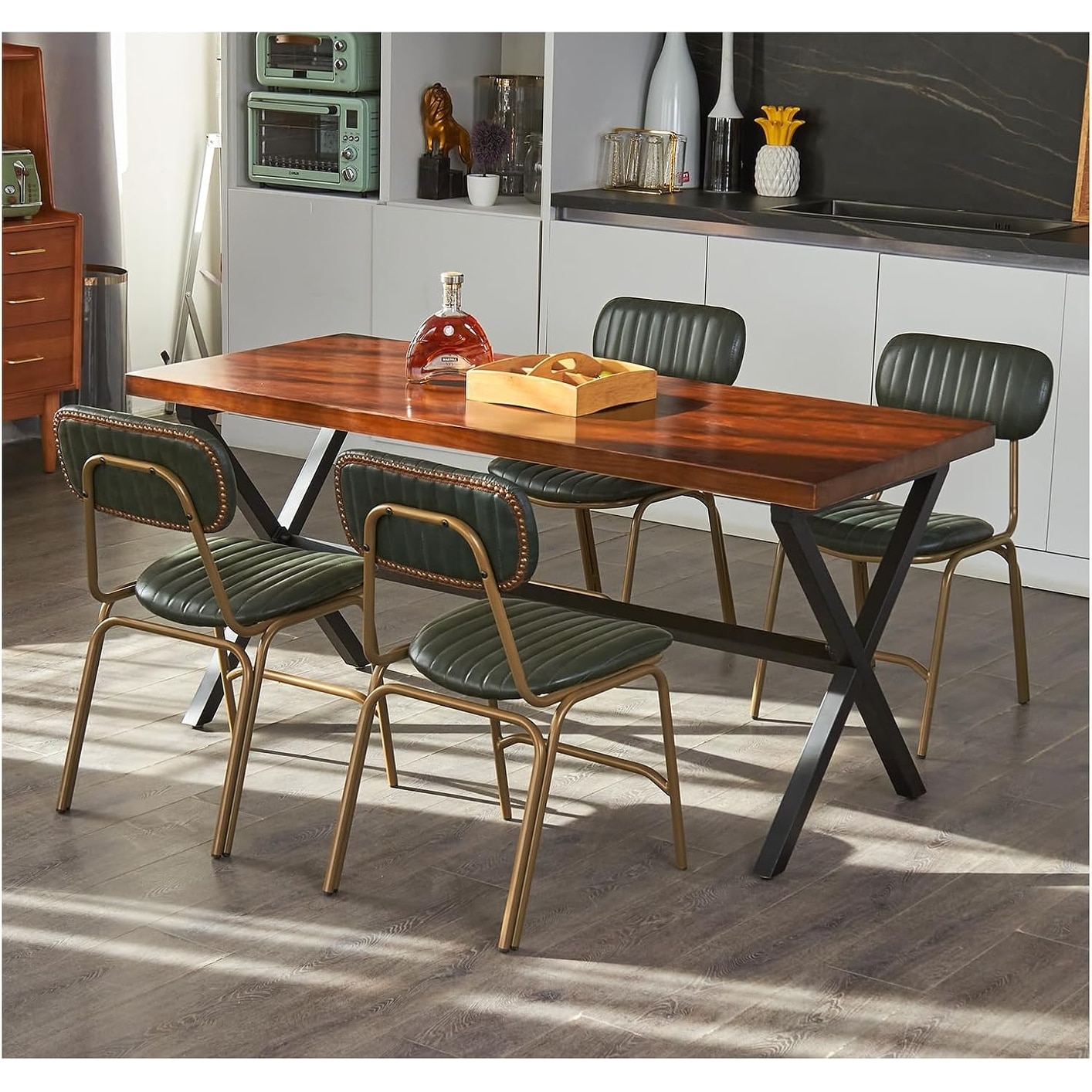 Set of 4 Mid Century Modern Dining Chairs with Faux Leather Upholstery and Metal Legs, Dark Green