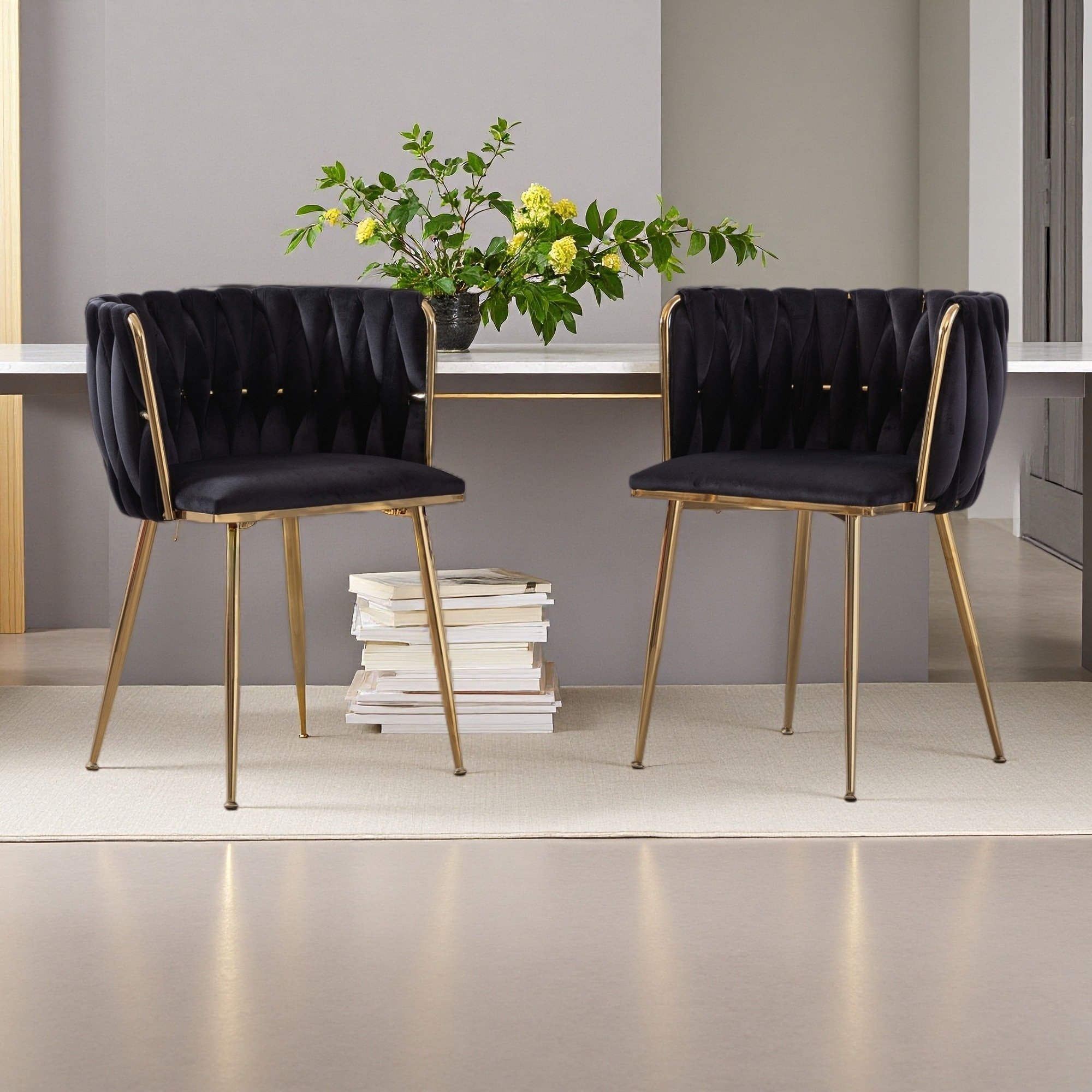 29.5"H Set of 2 Modern Velvet Dining Chairs with Metal Frame