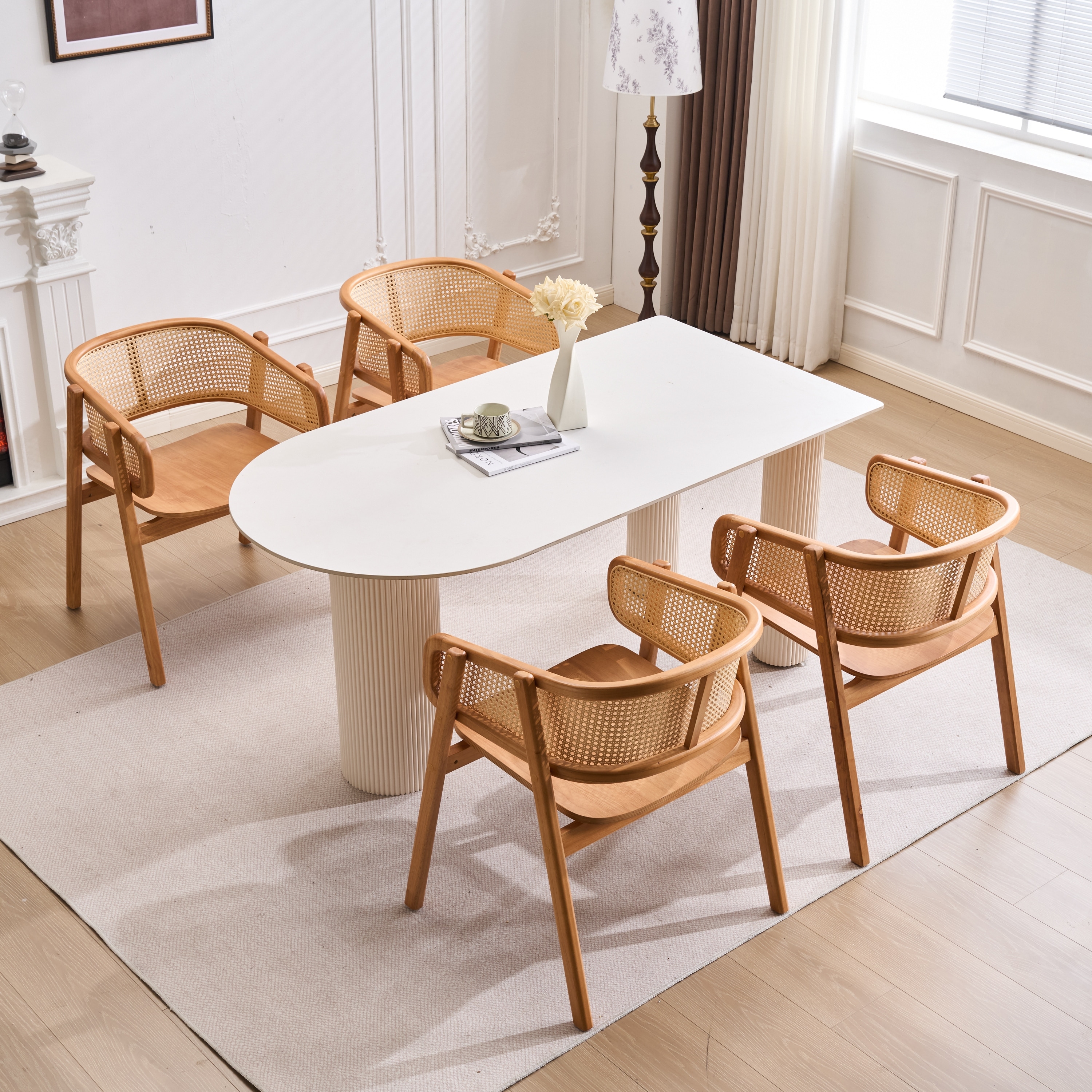 Christopher Knight Home - Mid-Cenutry Natural Rattan Mesh Dining Chairs Set with Ergonomic Curved Back and Armrests