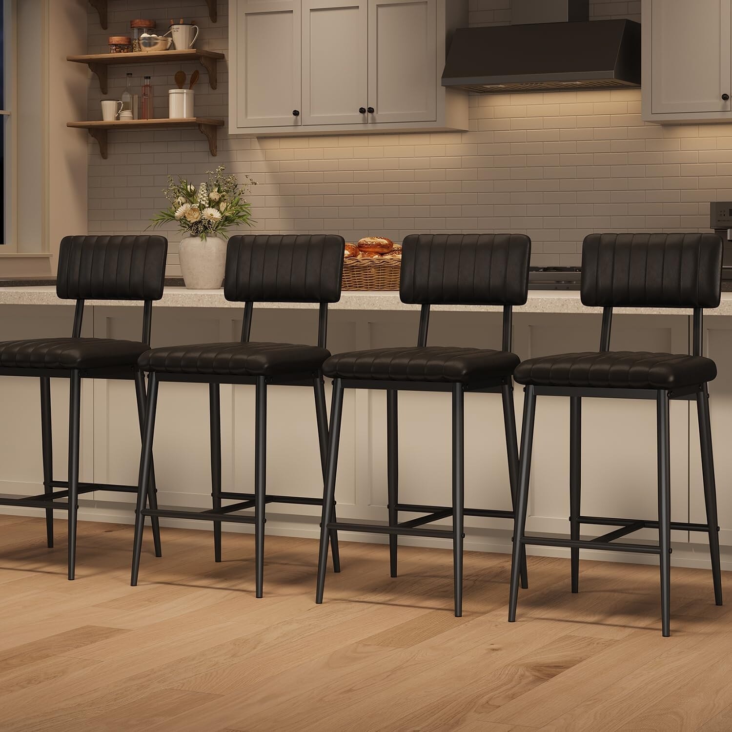 Bar Stools Set of 4 or 6 or 8 with Backrest and Footrest, Counter Height Bar Stools of