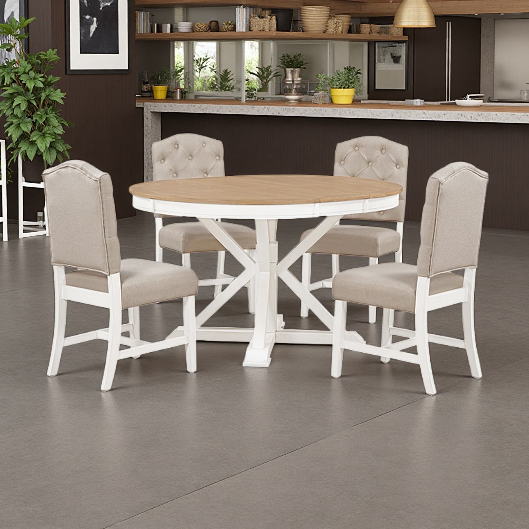 37.4"H Set of 4 Tufted Fabric Dining Chairs with High-Density Cushion & Rubberwood Legs