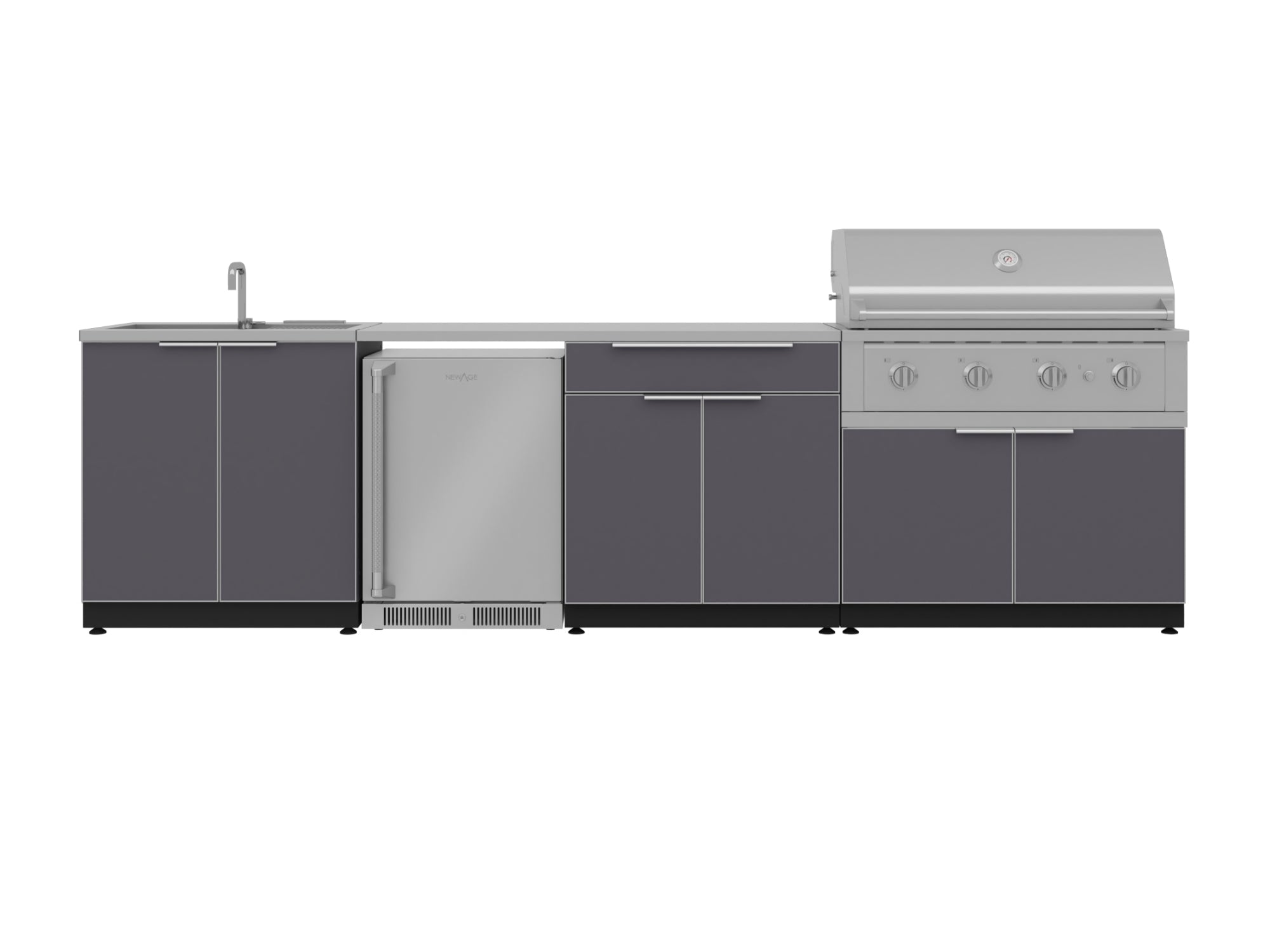 NewAge Outdoor Kitchens Aluminum 5-Piece Cabinet Set with Bar, Sink, Grill Cabinet, Platinum Grill, and Countertop