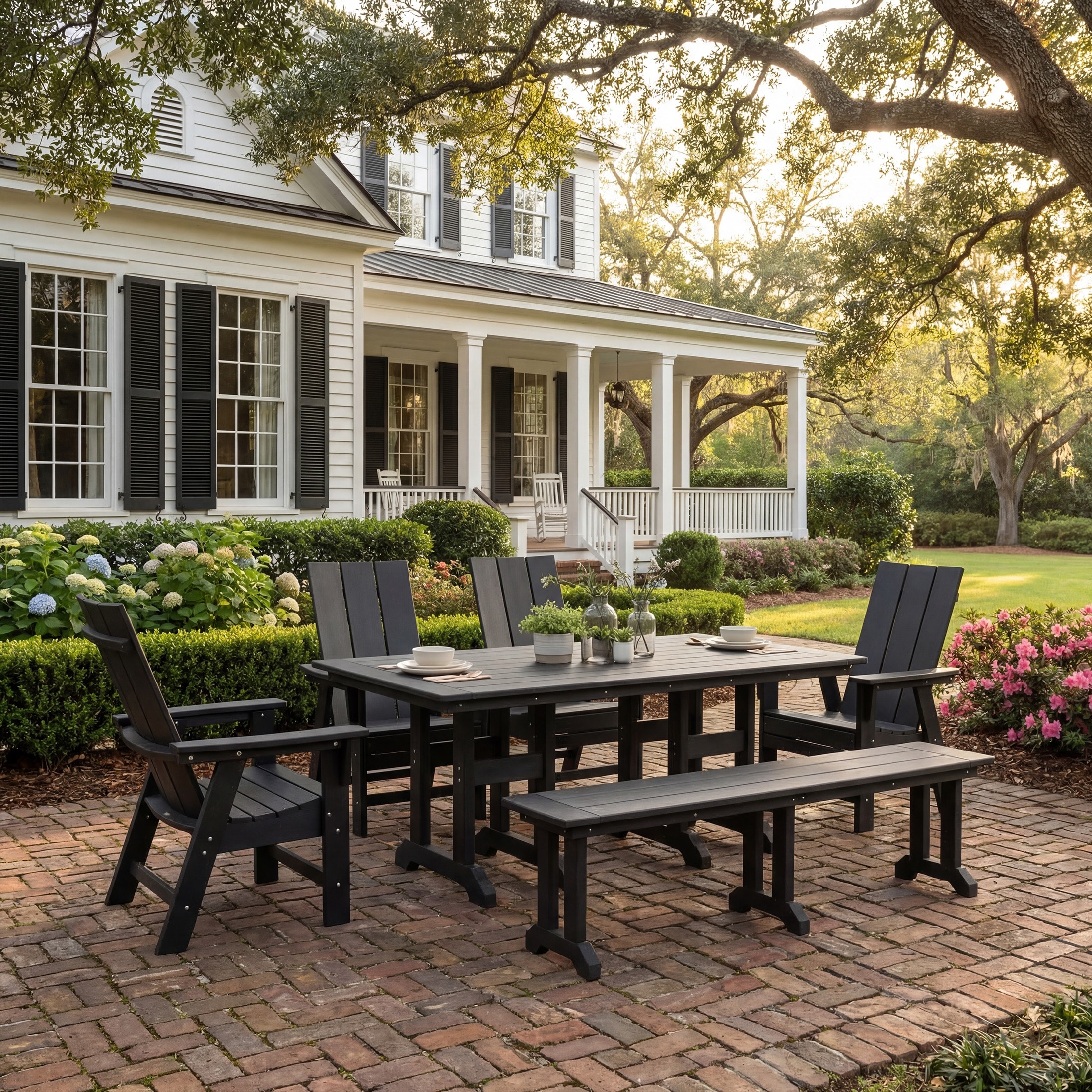 Shoreside 6-Piece Rectangular Poly Eco-Friendly All Weather Outdoor Dining Set with Bench