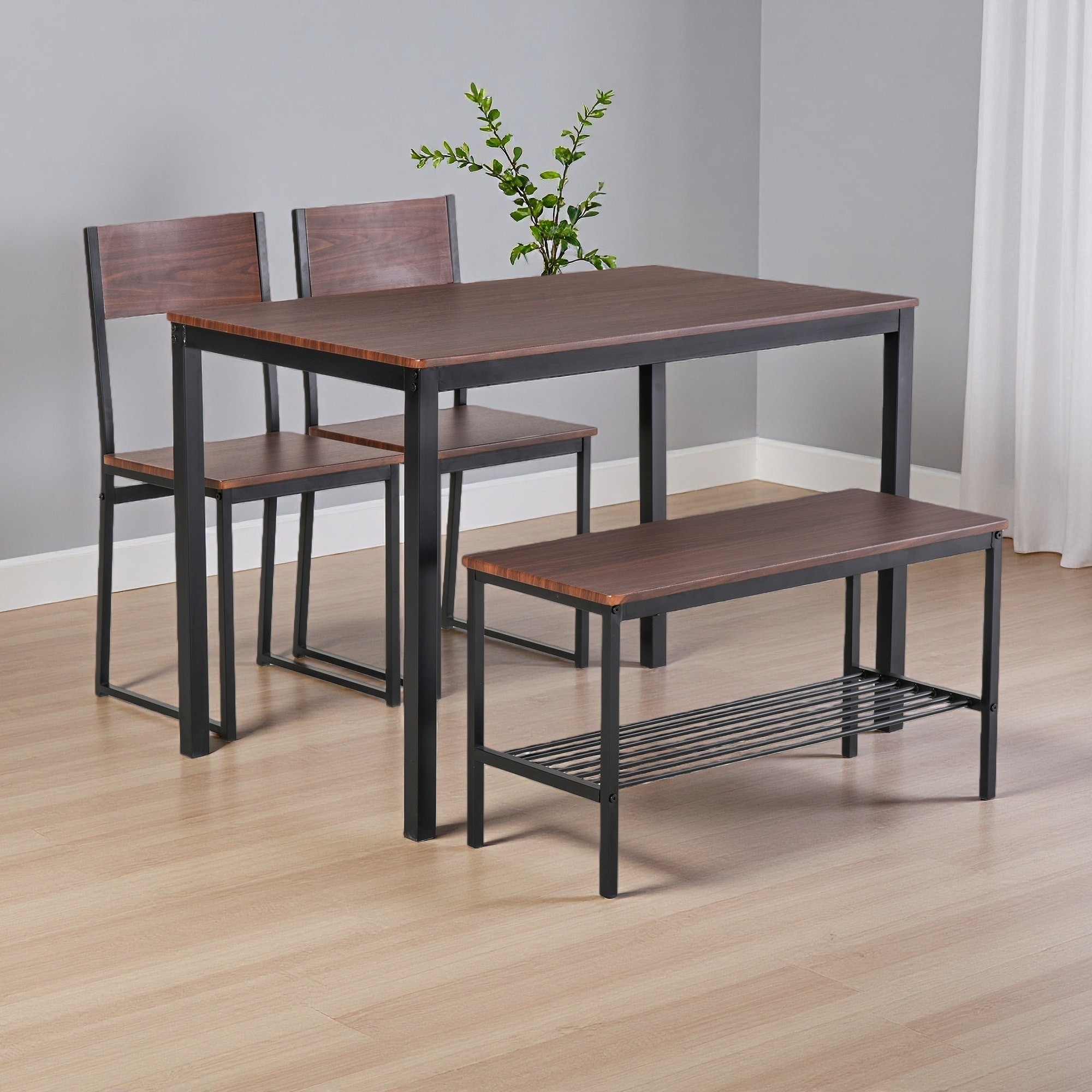 4-Piece Dining Set with Wooden Kitchen Table, Bench and Storage Rack