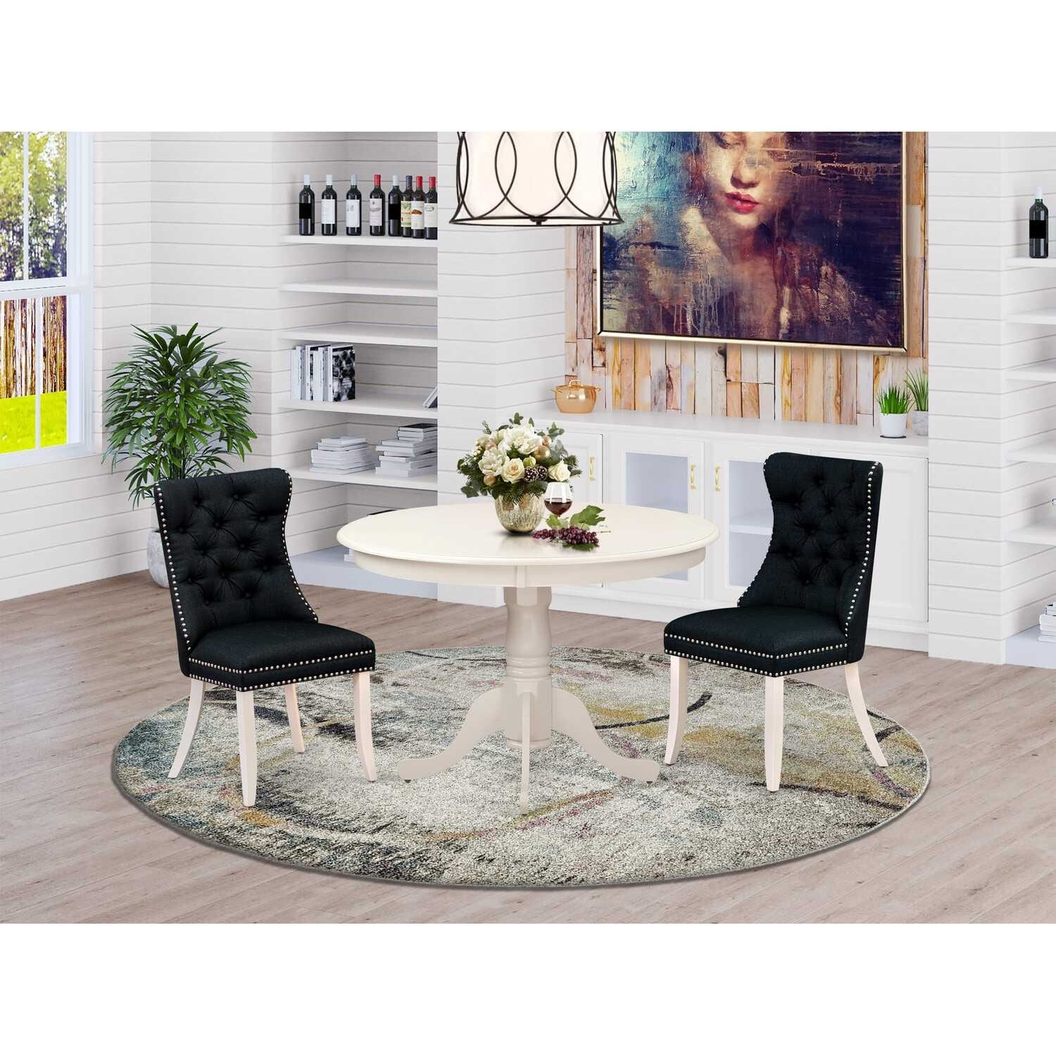 Kitchen Dining Set - Round Table with 2 Wood Chairs - Modern Dining Room Furniture