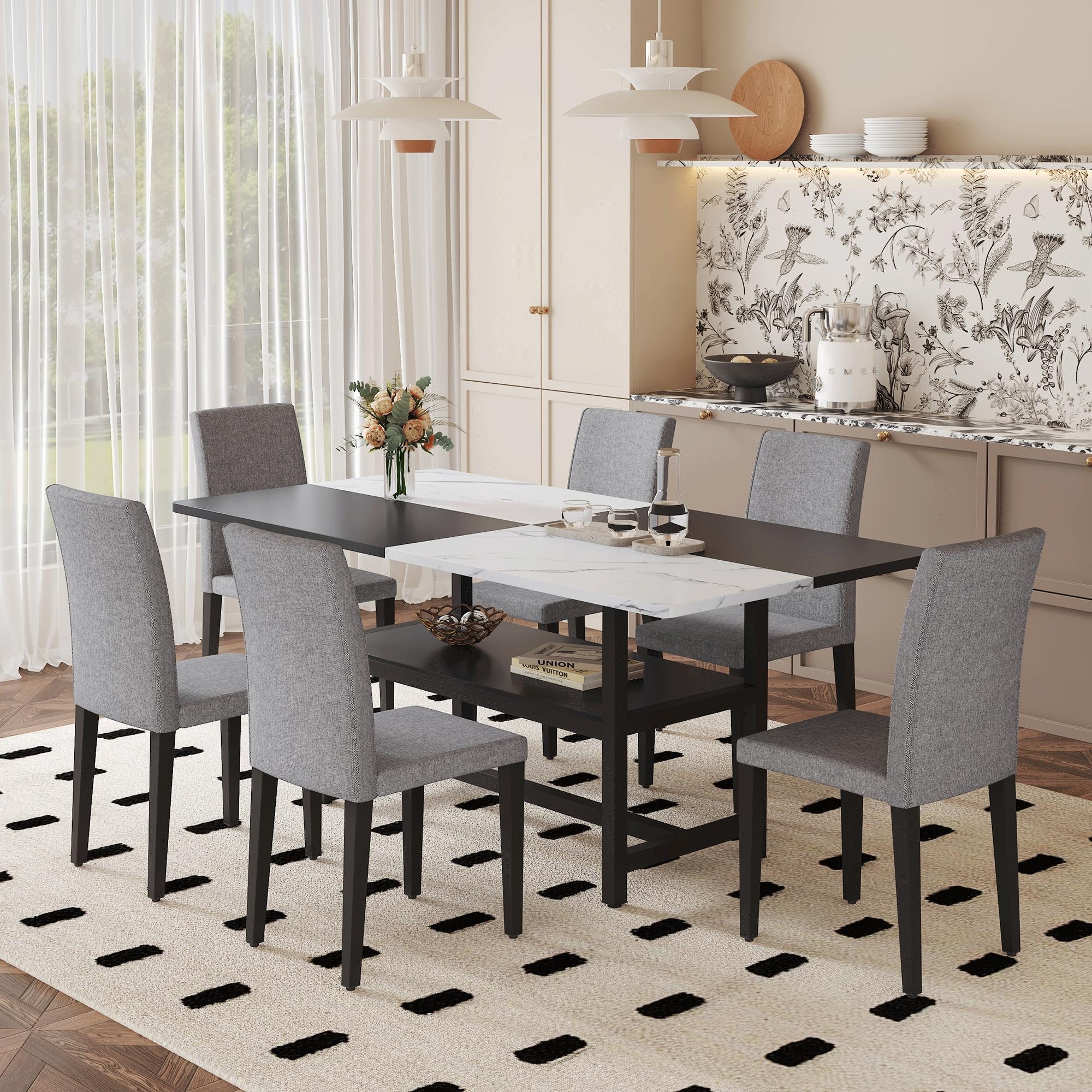 71" Two-Tone Rectangular Dining Table Set with Lower Storage Shelf, Modern Kitchen Dining Table & Chairs Set for Family