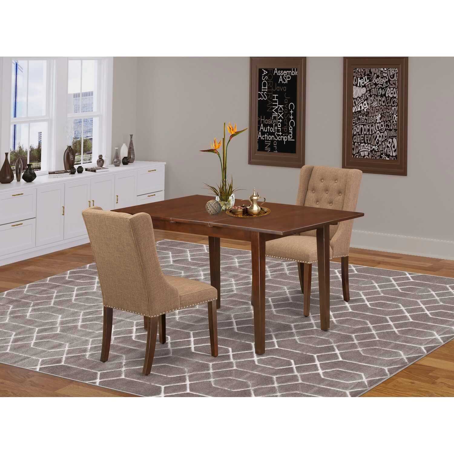 HomeStock 3-Pc Mahogany Finish Solid Wood Top with Butterfly Leaf Dining Table Set