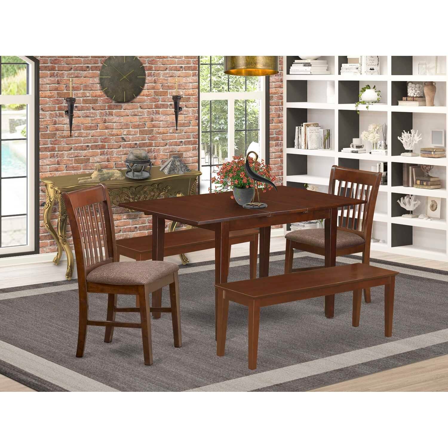 7-Piece Dining Set - Solid Wood Table & 6 Parson Chairs - Mahogany Finish
