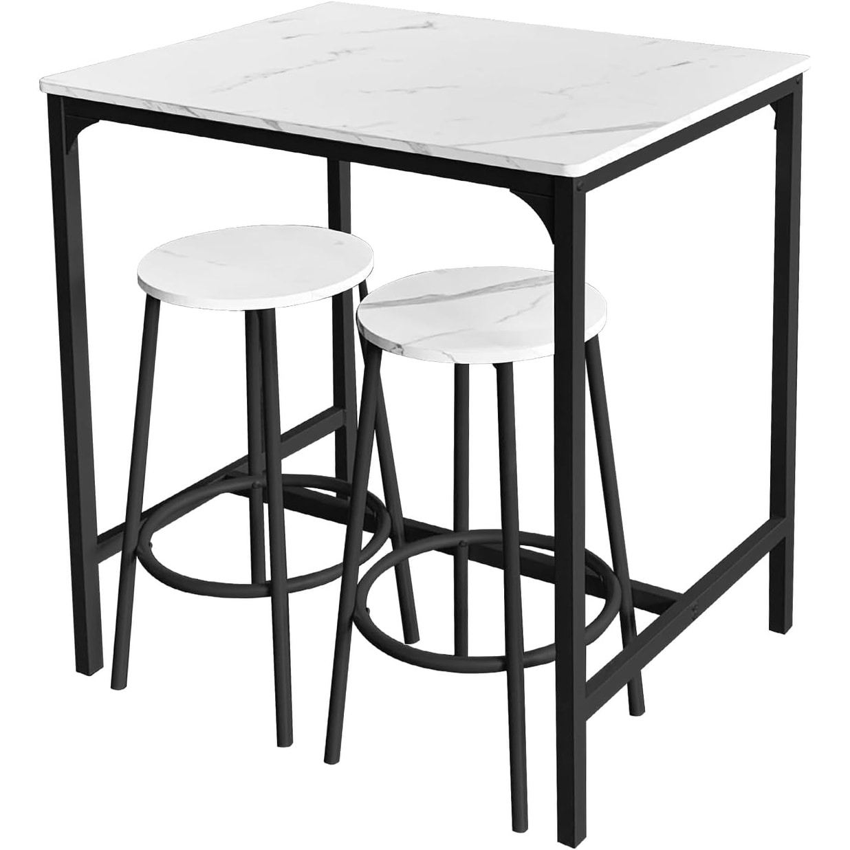 3-Piece Bar Table Set with 2 Stools, Compact Dining Room Table for Small Spaces, Black