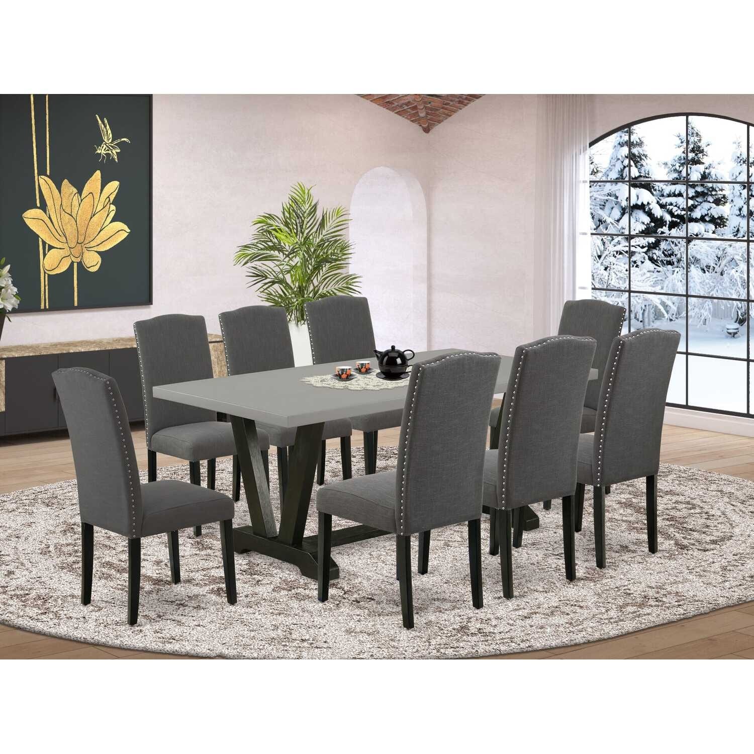 Kitchen Table Set with 8 Chairs - Modern Dining Room Set - Hardwood Kitchen Set - Rectangular Table