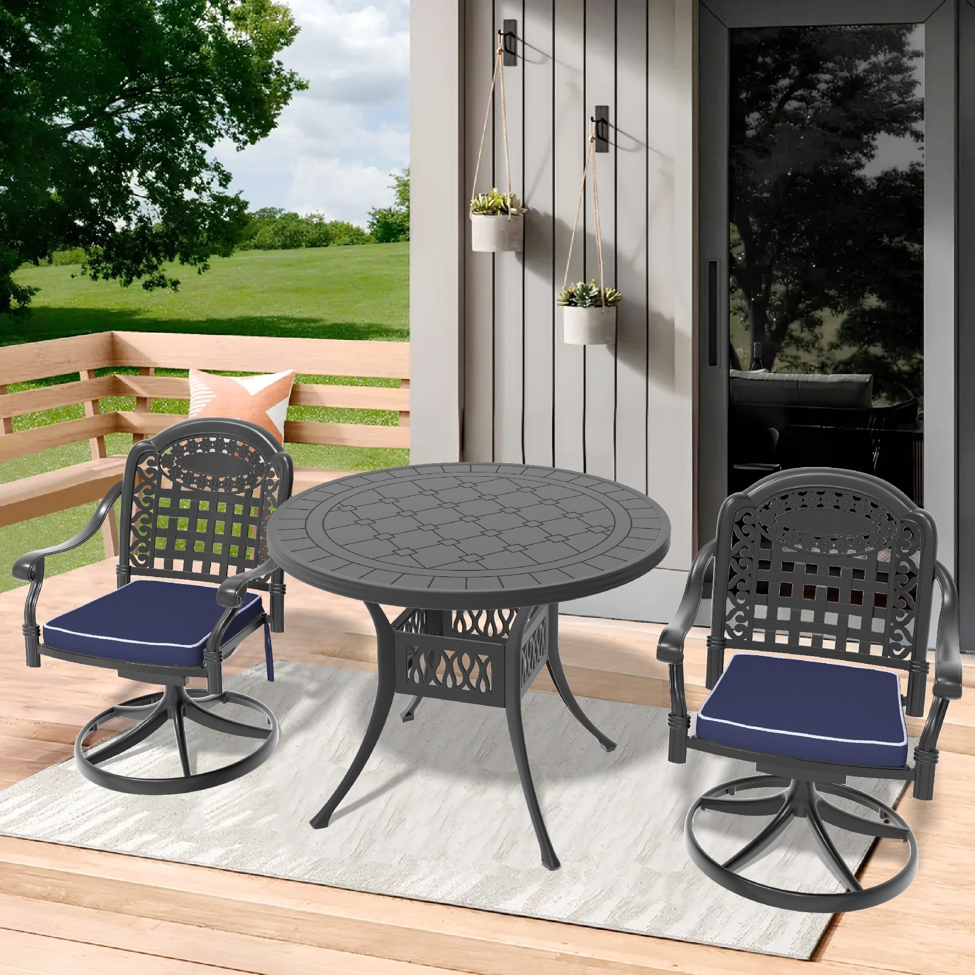 3Pcs Outdoor All-Weather Cast Aluminum Dining Set, 2 Swivel Chairs and 39.37" Round Table
