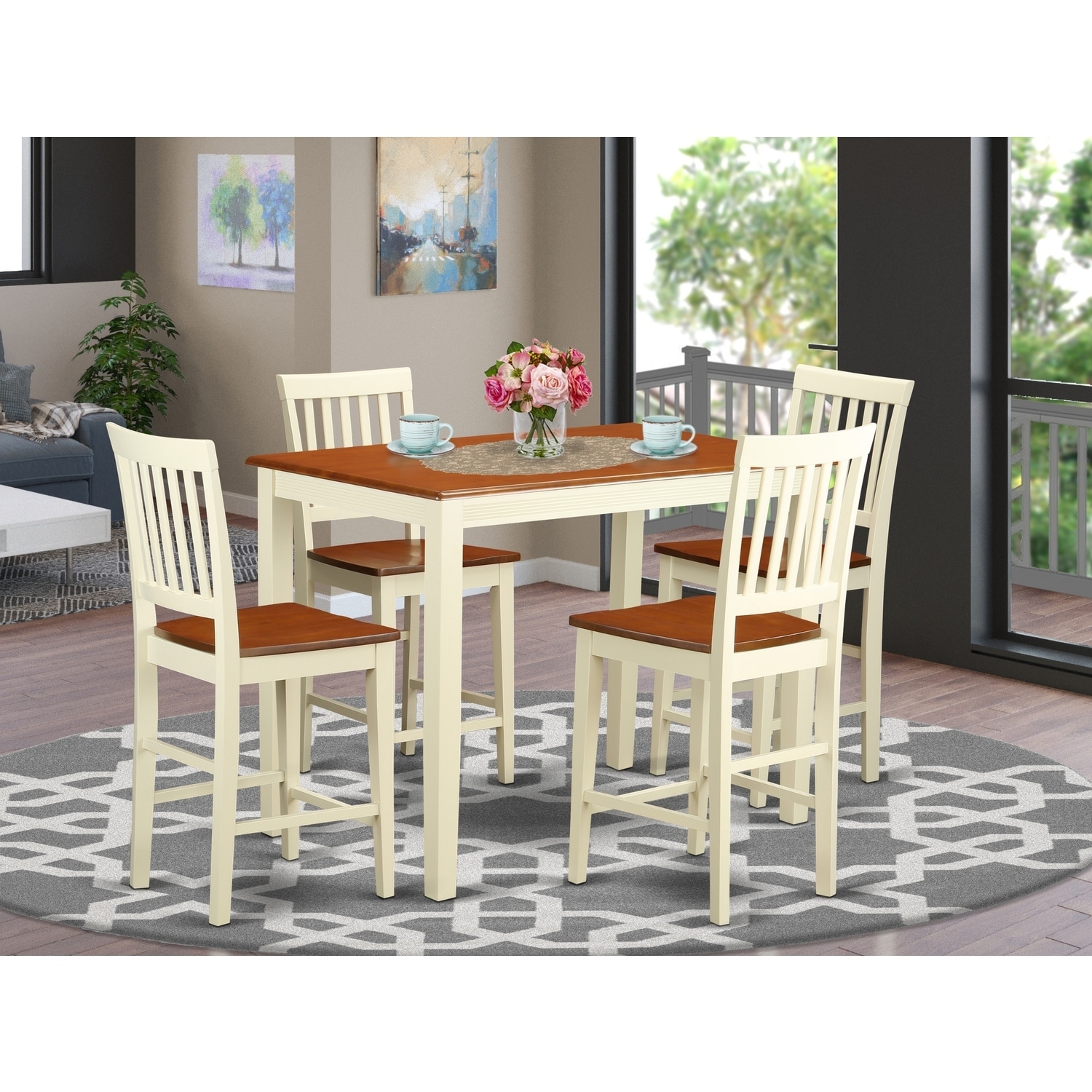 HomeStock 5-Pc Buttermilk and Cherry Solid Wood Top - Dining Room Set - Seats 4