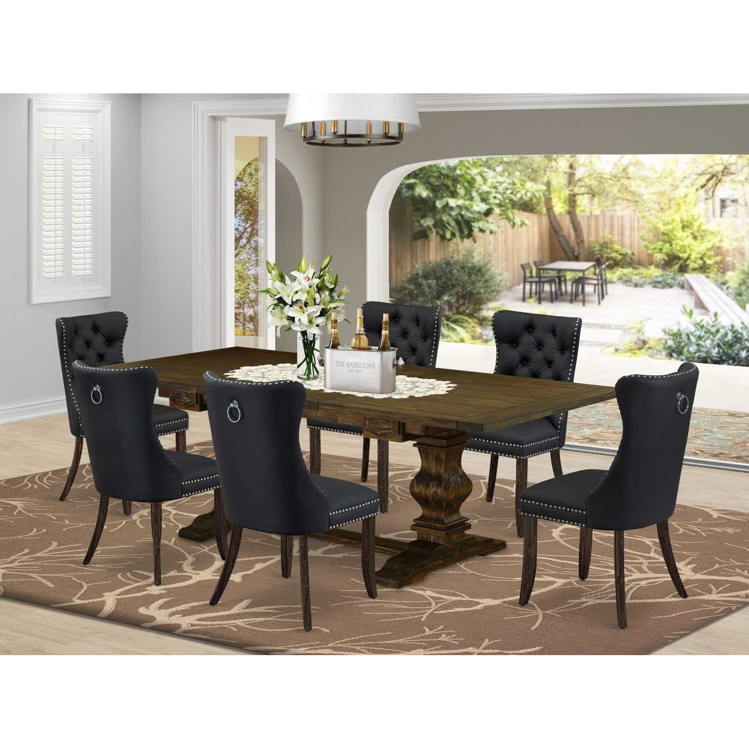 HomeStock 7-Piece Rectangle Black Finish Solid Wood Top Dining Table with 6 Chairs