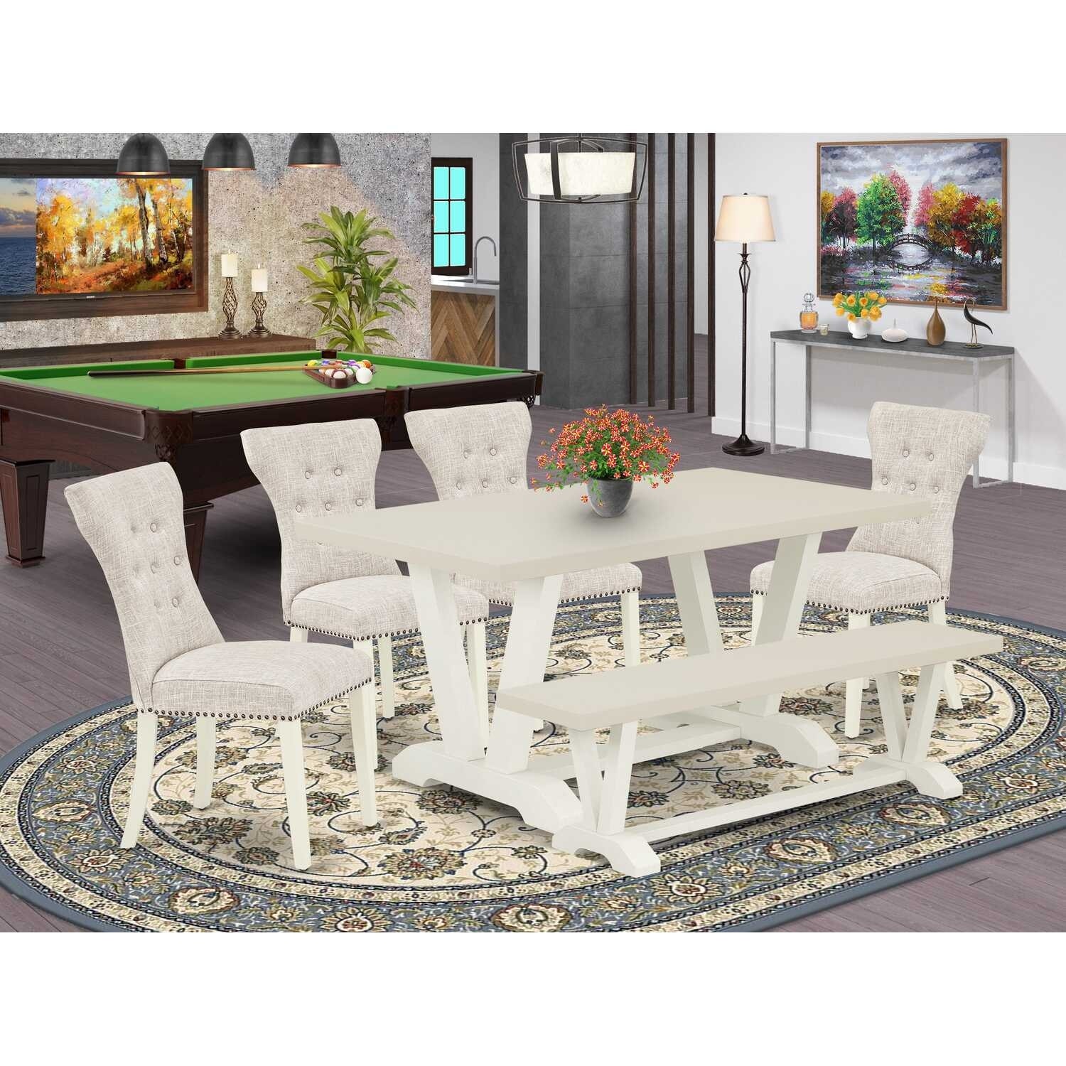 HomeStock 6-Pc Rectangle Natural Oak Finish Solid Wood Top Dining Table with 1-Bench, 4-Chairs