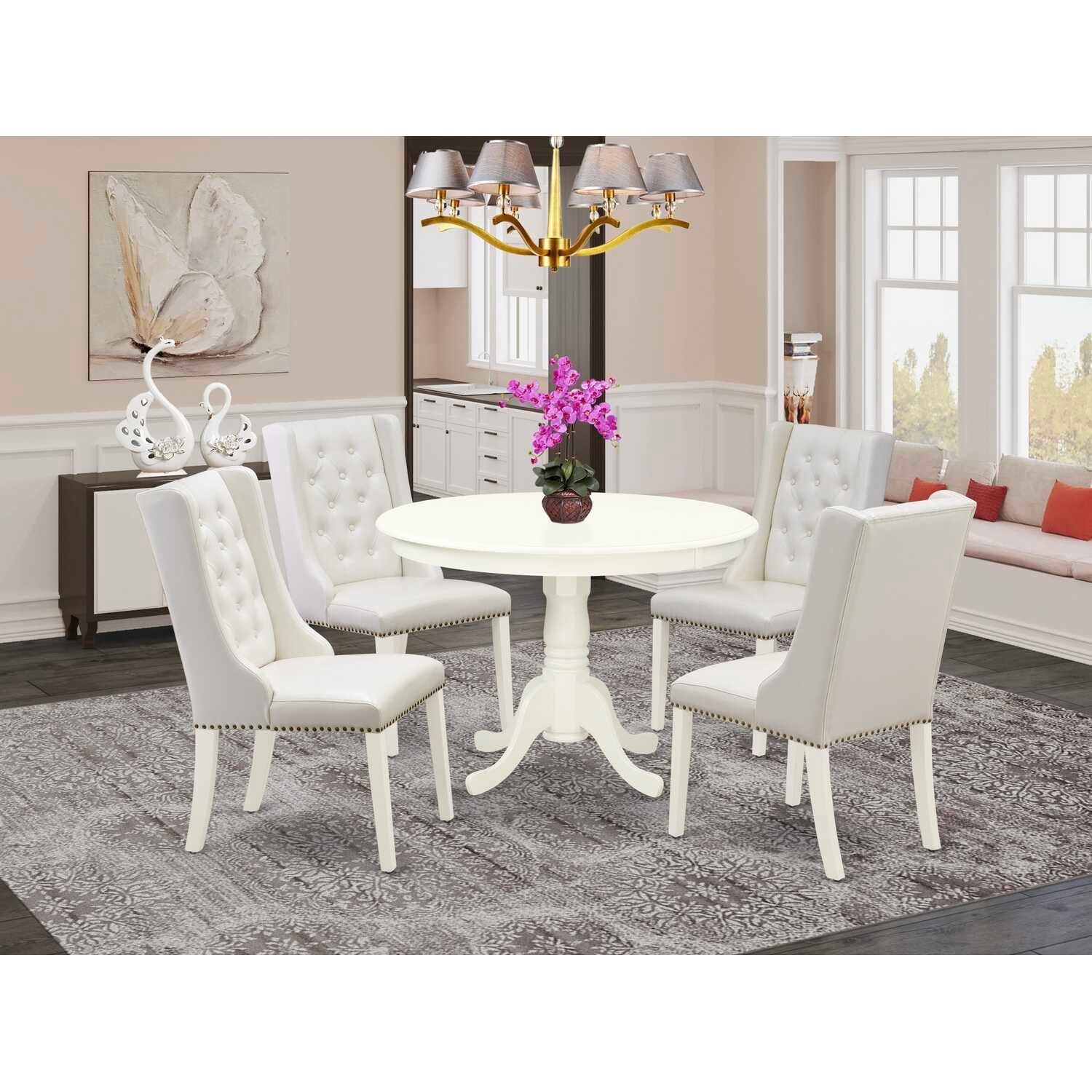 East West Furniture Dining Room Set Contains a Round Kitchen Table and Chairs, Linen White (Pieces Options)