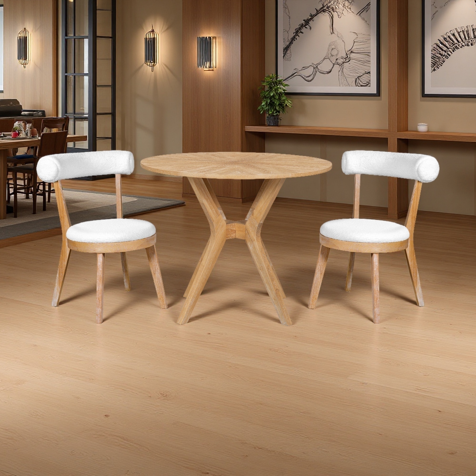 Mid-Century Modern 3-Piece Dining Set, 39.4" Round Table with Oak Veneer Finish & 2 Chairs, Rubberwood Plywood Construction