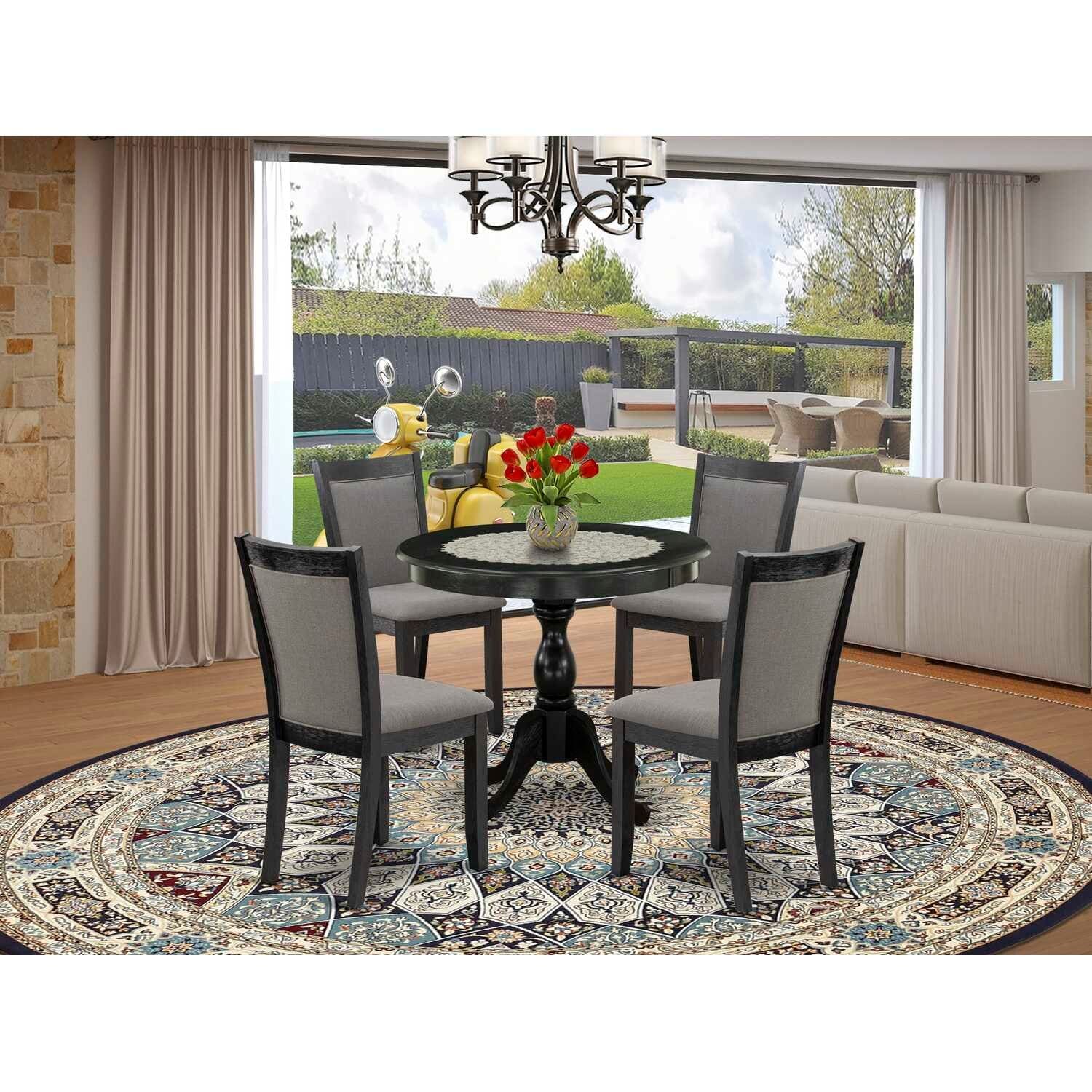 HomeStock 5-Piece Round Distressed Jacobean Finish Solid Wood Top Dining Table with 4 Parson Chair