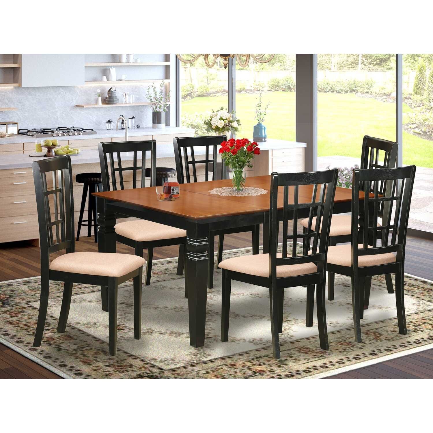 HomeStock 7-Piece Black and Cherry Finish Solid Wood Top Dining Table with 6 Chairs