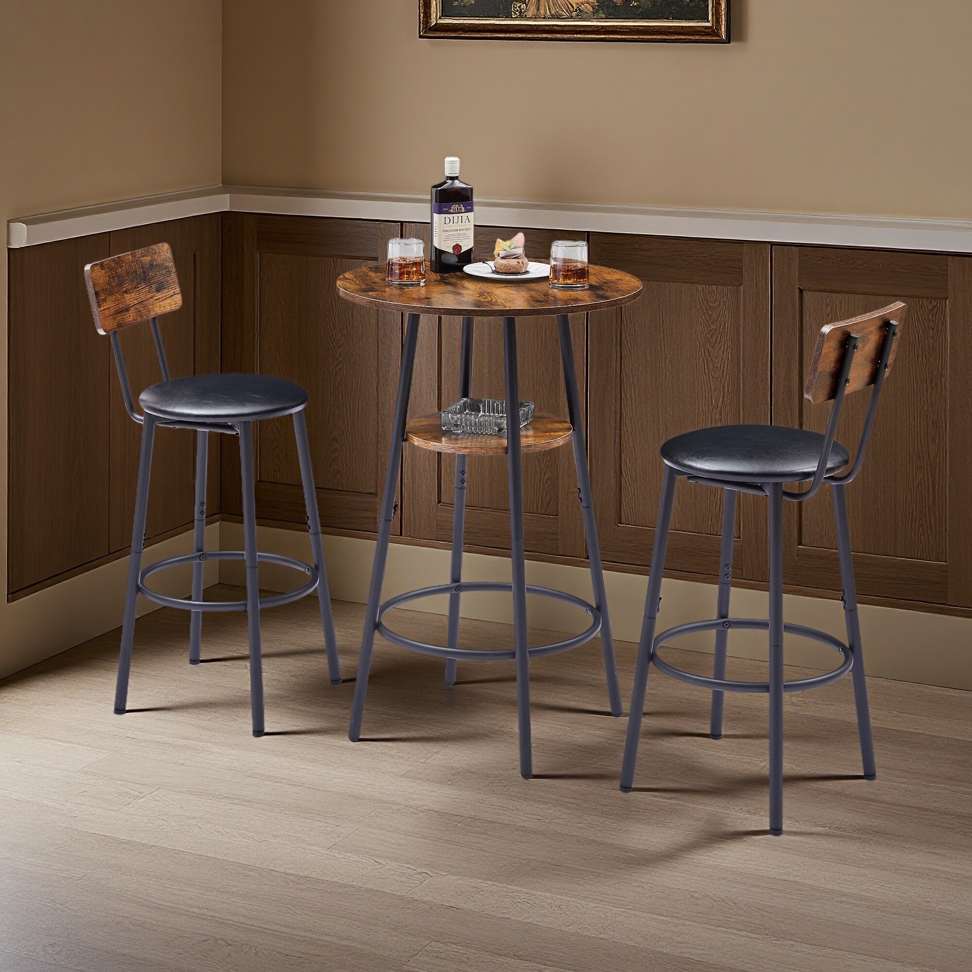 3 Piece Bar Height Outdoor Bistro Set for 2, Round Patio Pub Table 2 Bar Chairs with Comfortable Design & Strong Build,