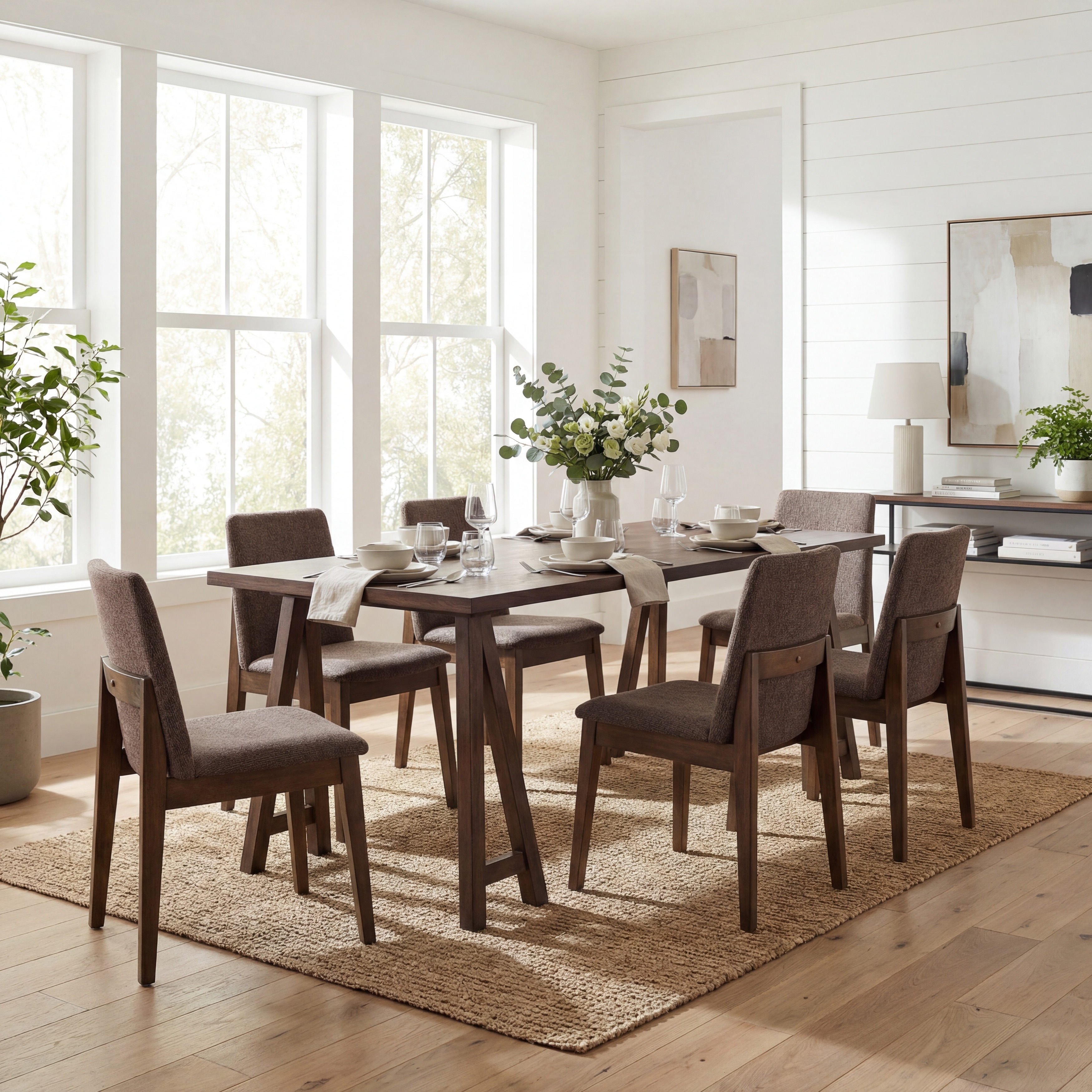 Two Tone Walnut - Ash Solid Dining Set 7 Piece