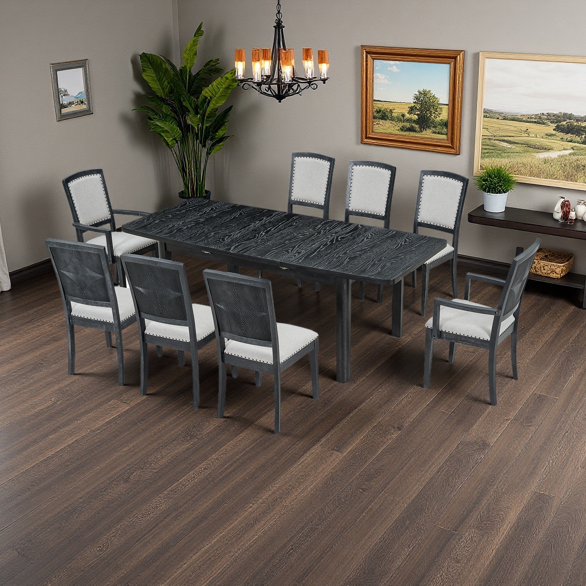 9-Piece Rustic Extendable Dining Set, 84" Table with 24" Leaf, 6 Upholstered Armless Chairs & 2 Padded Armchairs
