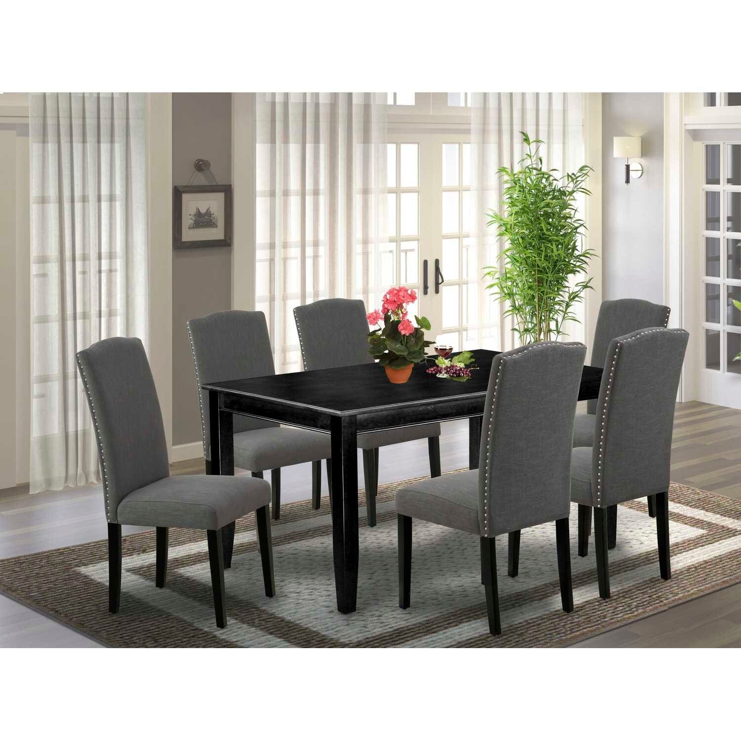 HomeStock 7-Piece Rectangle Black Finish Solid Wood Top Dining Table with 6 Parson Chairs