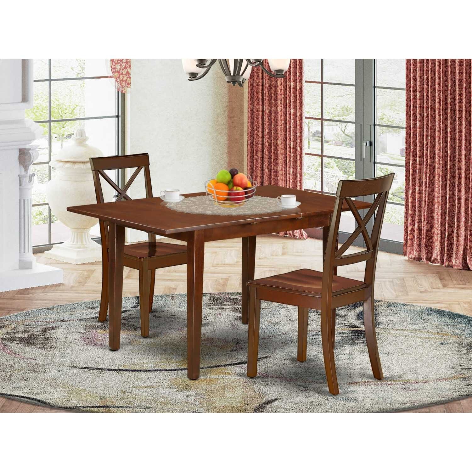 Vintage Kitchen Dining Set - Table with Butterfly Leaf & 2 Chairs - 32x54 Inch Mahogany Finish