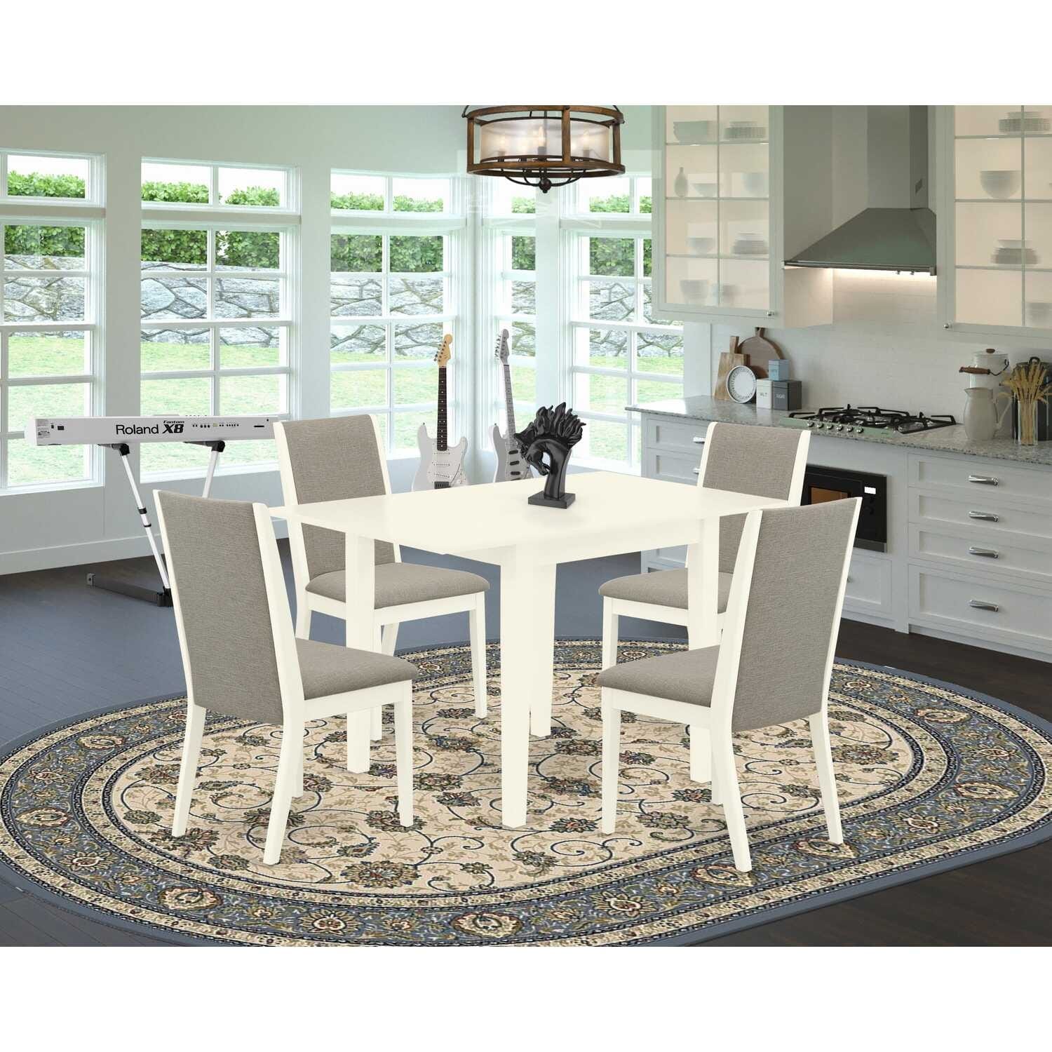 HomeStock 5-Piece Rectangle Wire Brushed Linen White Finish Solid Wood Top Dining Table with 4 Parson Chair