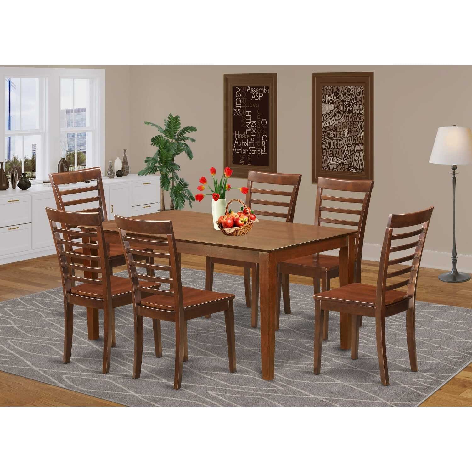 HomeStock 7-Piece Rectangle Mahogany Finish Solid Wood Top Dining Table with 6 Chairs