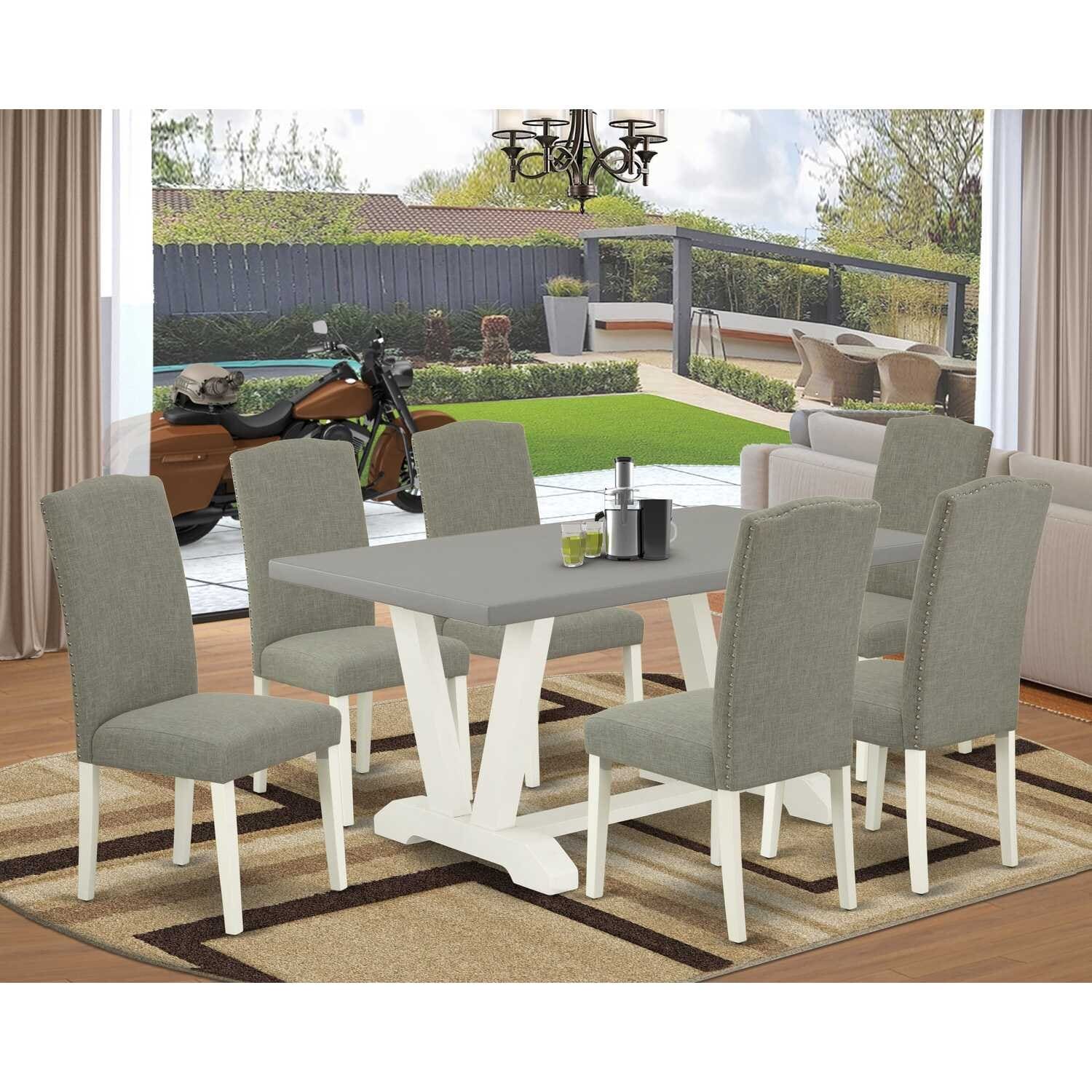 7-Piece Rectangle Natural Oak Finish Solid Wood Top Dining Table with 6 Parson Chairs with
