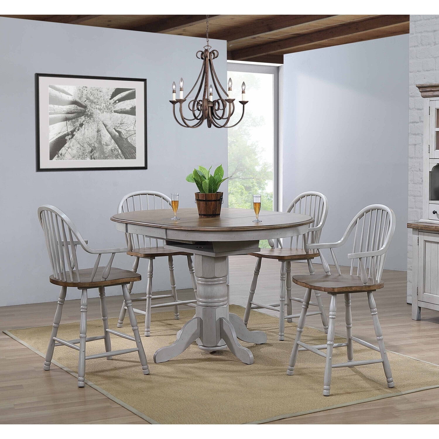 Extendable Dining Table Set - 9 Piece Oval Table with Chairs - Seats 10 - Distressed Gray & Brown Finish