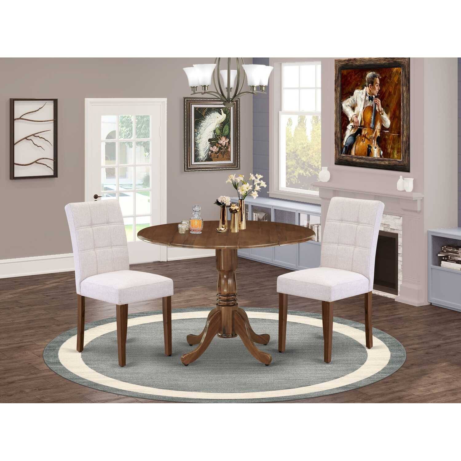 3-Piece Linen white Solid Wood Top - Round Dining Room Set - Seats 4