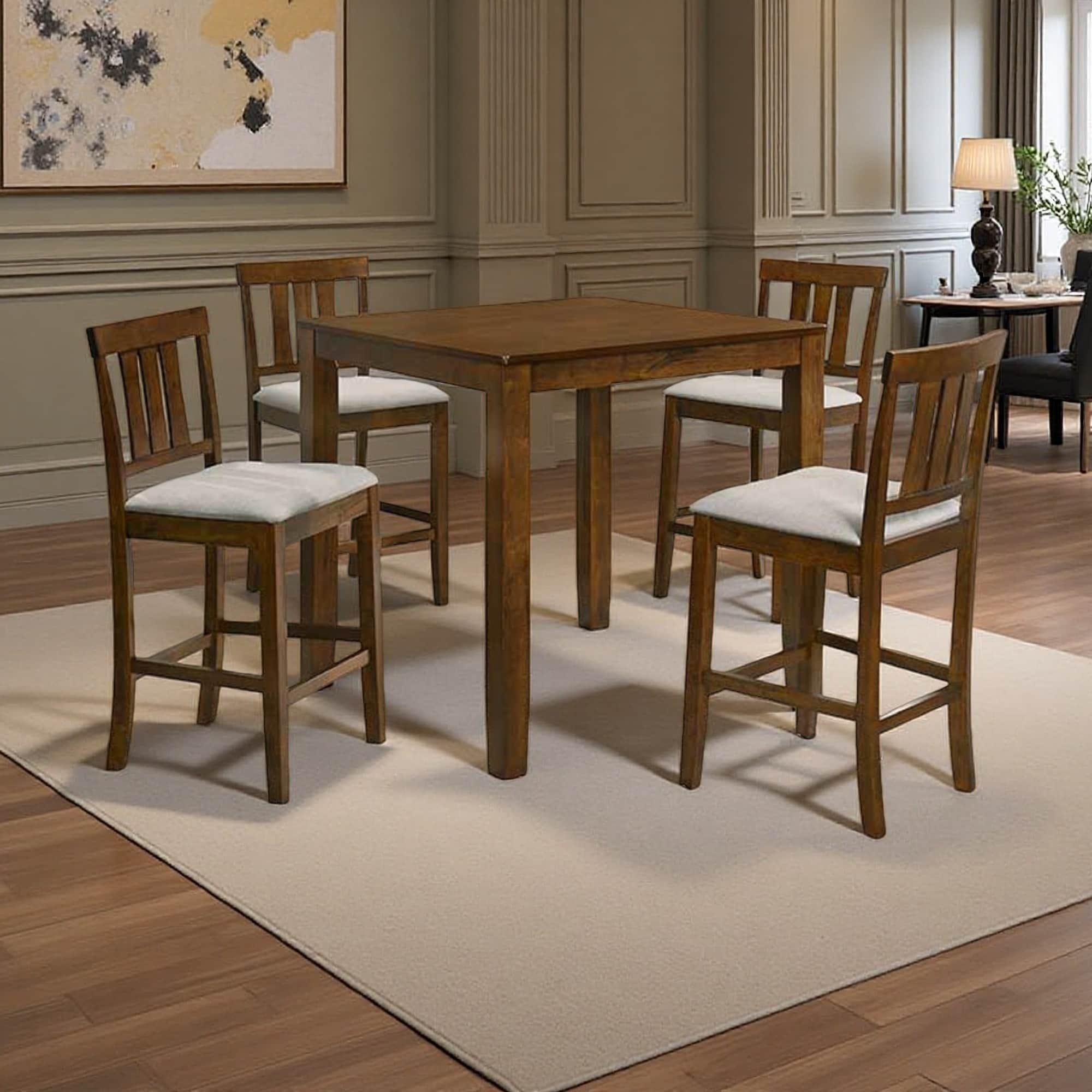 Set of 5 Counter Height 35.4" Dining Set Square Table Cream Cushioned Upholstered Slatted Back Chairs Wooden Contemporary Style