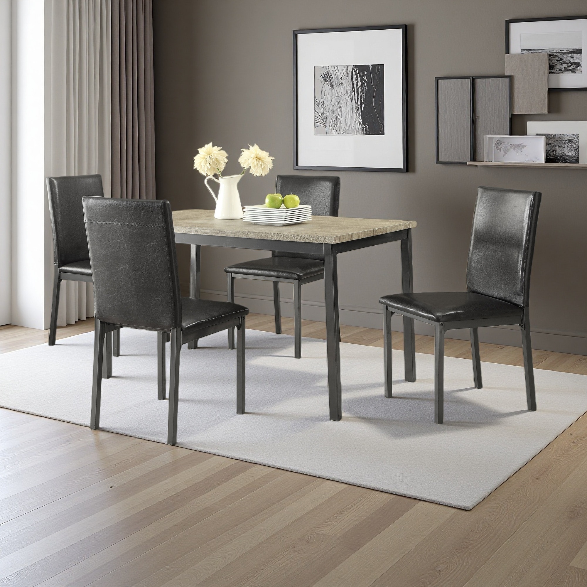 Set of 5 Dining Table Set 48"L with Metal Legs, Weathered Wood Top, Four Slim Parson Chairs with Leatherette Upholstery
