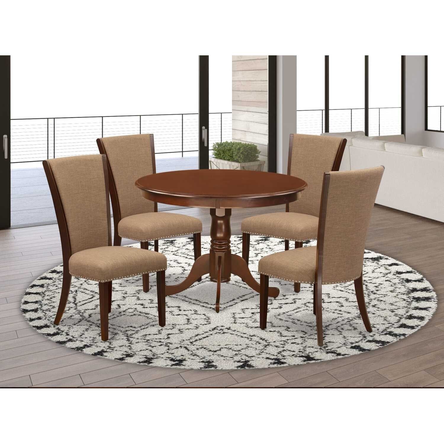 HomeStock 5-Piece Round Mahogany Finish Solid Wood Top Dining table with 4 Chairs